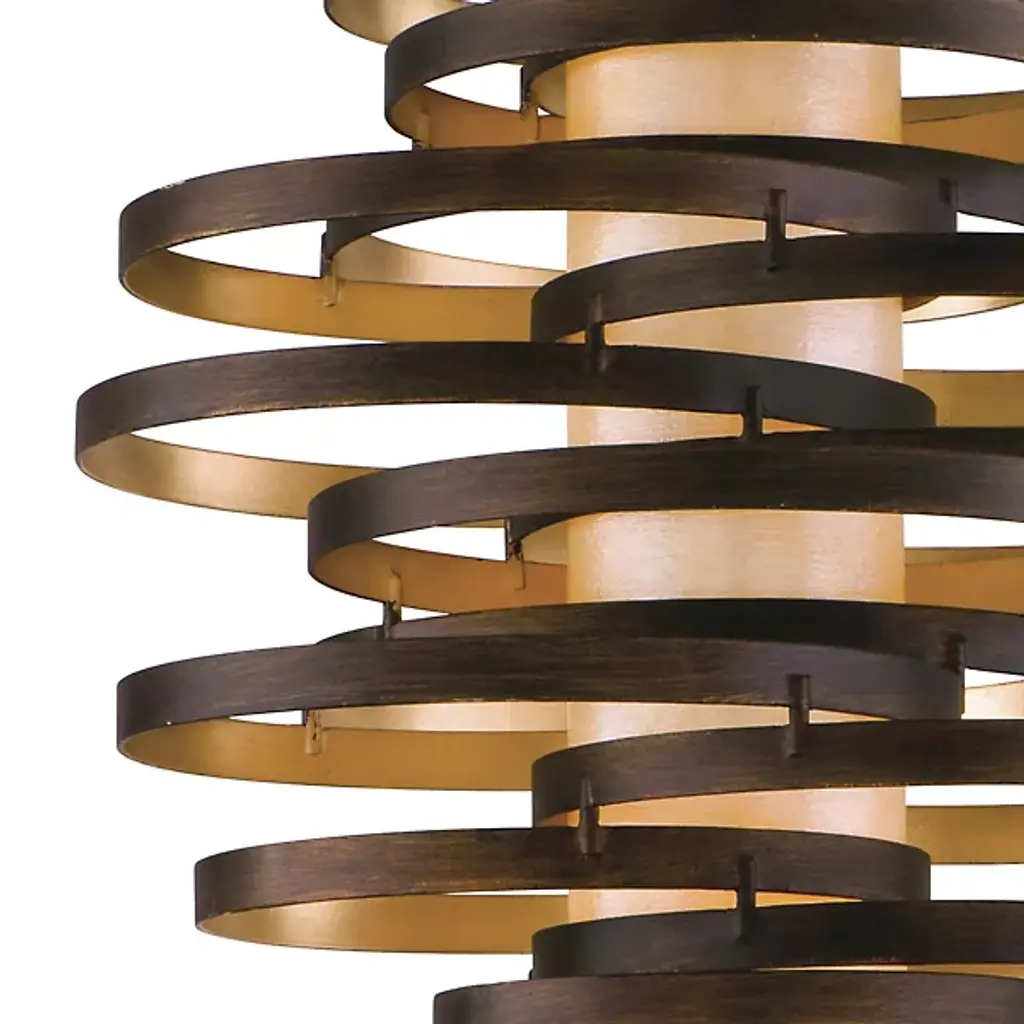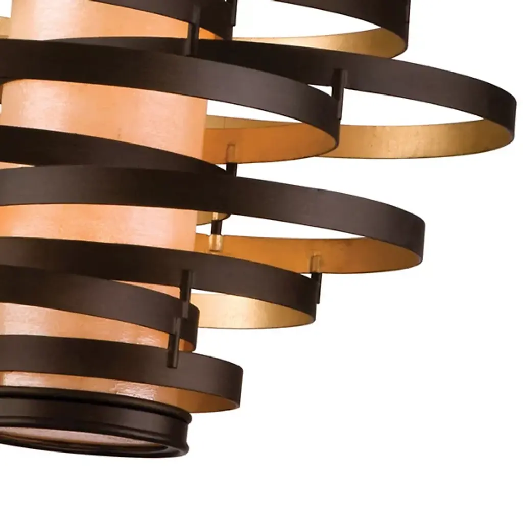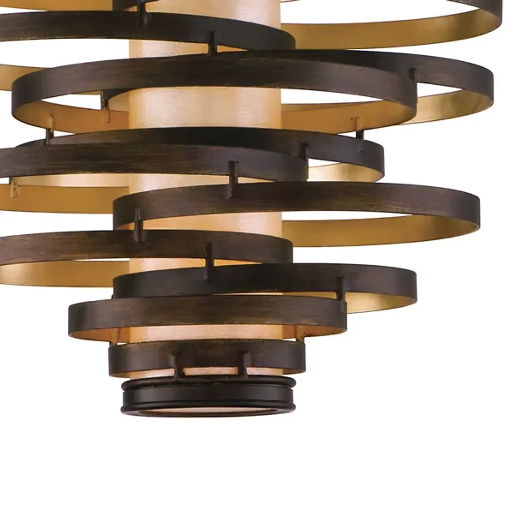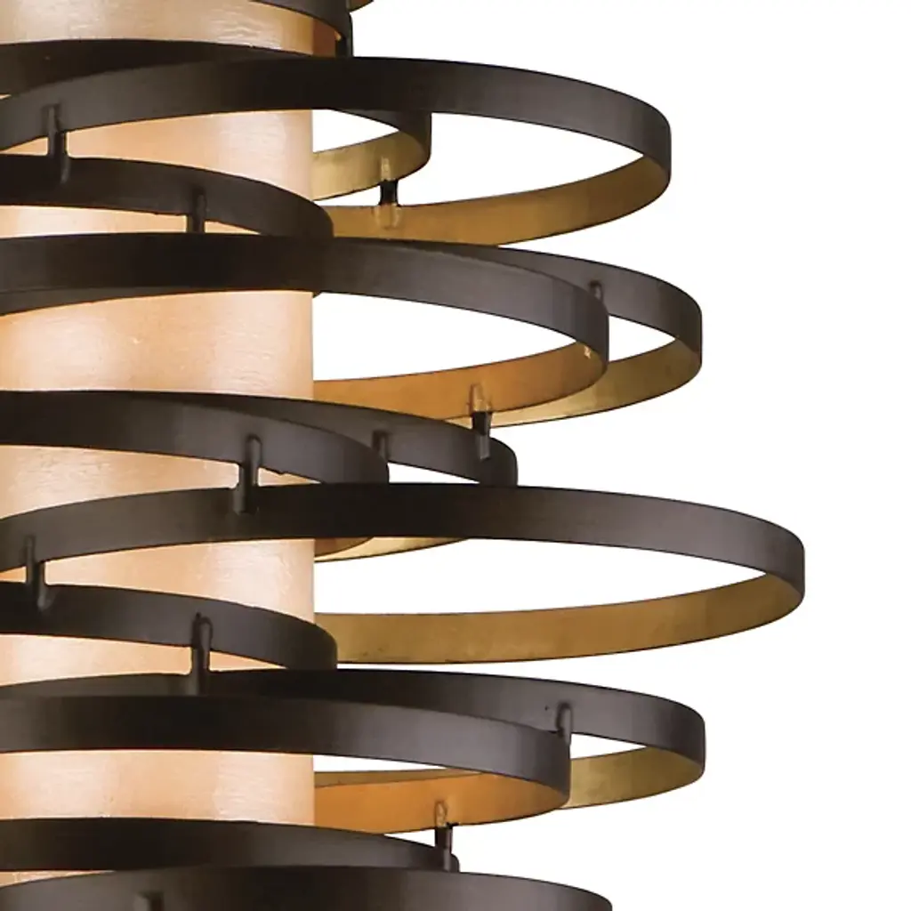 The Corbett Lighting Vertigo Pendant features twisted pieces of metal spiraled around in an uncontrolled fashion, but have no fear each piece is firmly adhered together. Made with a hand crafted iron body and fiber glass shade, this pendant will light your space in a dynamic fashion just as the name implies.