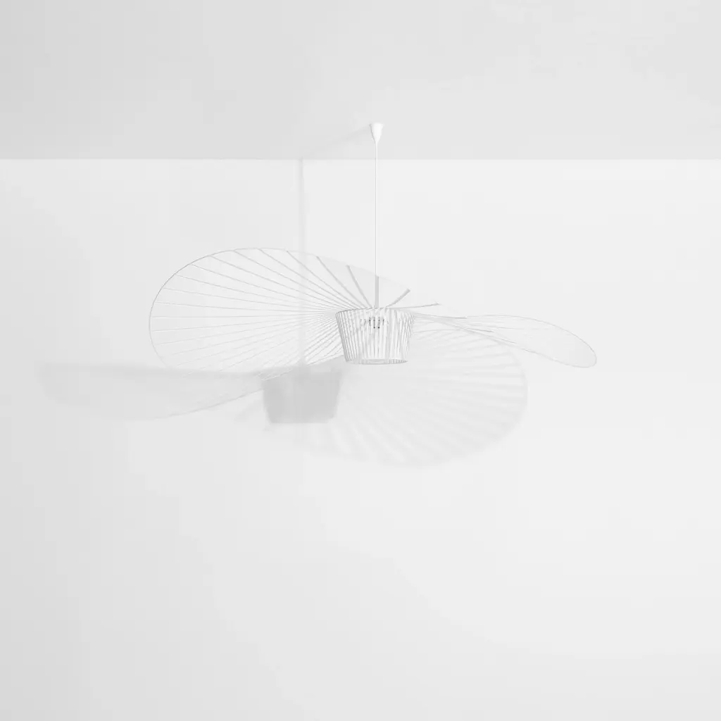 Parisian designer Constance Guisset's work is inspired by movement, lightness, and surprise. The Vertigo Pendant Lamp is a dramatic, large-scale yet lightweight lamp that gently moves and spins with the breeze. When lit, it casts an interesting shadow pattern on the floor and surrounding walls. The Vertigo Pendant Lamp requires hardwire installation, and its shade requires simple assembly. Clean with a soft, lint-free cloth. Requires one 53 Watt (1050 Lumens) 120 Volt E26 bulb (not included). Available in Copper and White.