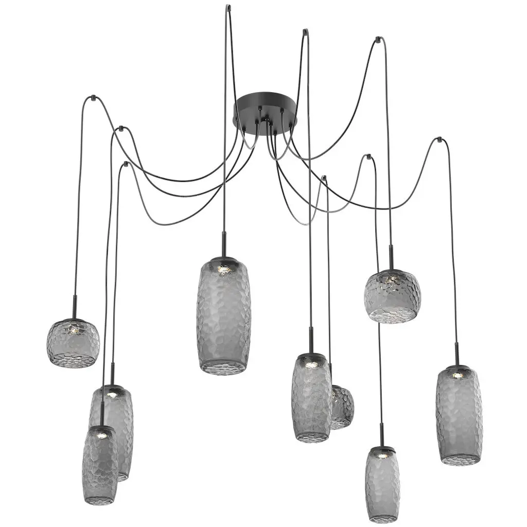 A modern fusion of geometric form and organic design, this versatile chandelier style enables customization of the placement and height of each pendant. Vessel glass is illuminated with integrated LED, creating a captivating play of light and shadow that brings visual intrigue and sophistication to todays interiors. Choose from several glass colors and finishes.