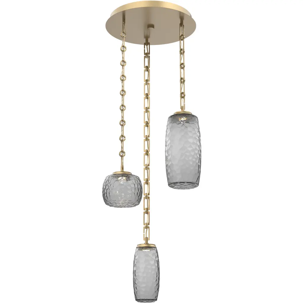 A modern fusion of geometric form and organic design, the Vessel round multi-pendant chandelier provides a captivating play of light and shadow that brings visual intrigue and sophistication to todays interiors. Vessel lighting is illuminated with 93 CRI integrated LED and includes a choice of glass colors, finishes and color temperature options. Suspension options include cloth-braided cord or handcrafted chain in three vintage-inspired styles.