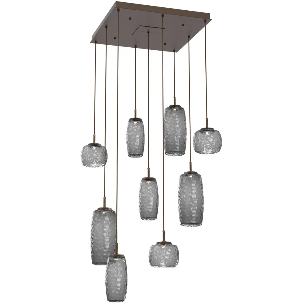 Vessel 9pc Square Multi-Pendant-Burnished Bronze-Smoke Blown Glass-Cloth Braided Cord-LED 3000K