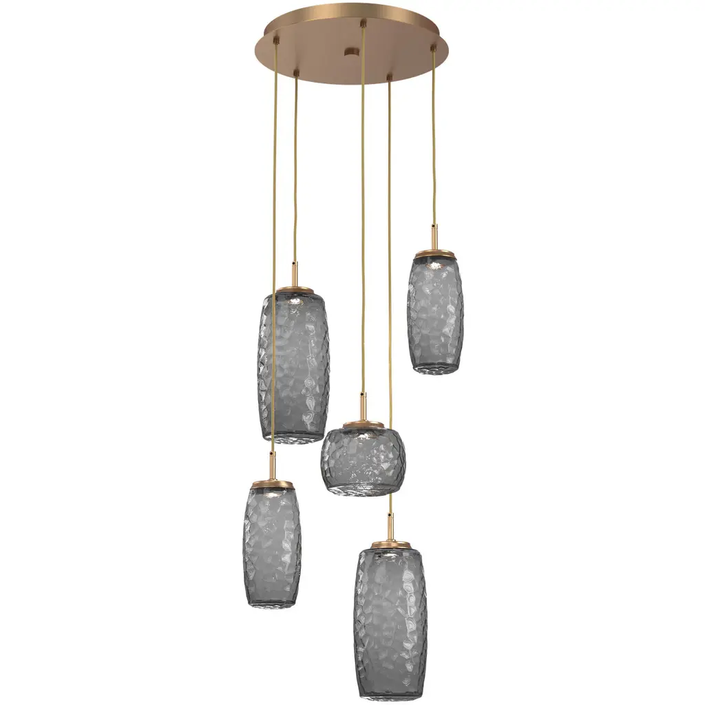 Vessel 5pc Round Multi-Pendant-Classic Silver-Smoke Blown Glass-Cloth Braided Cord-LED 2700K