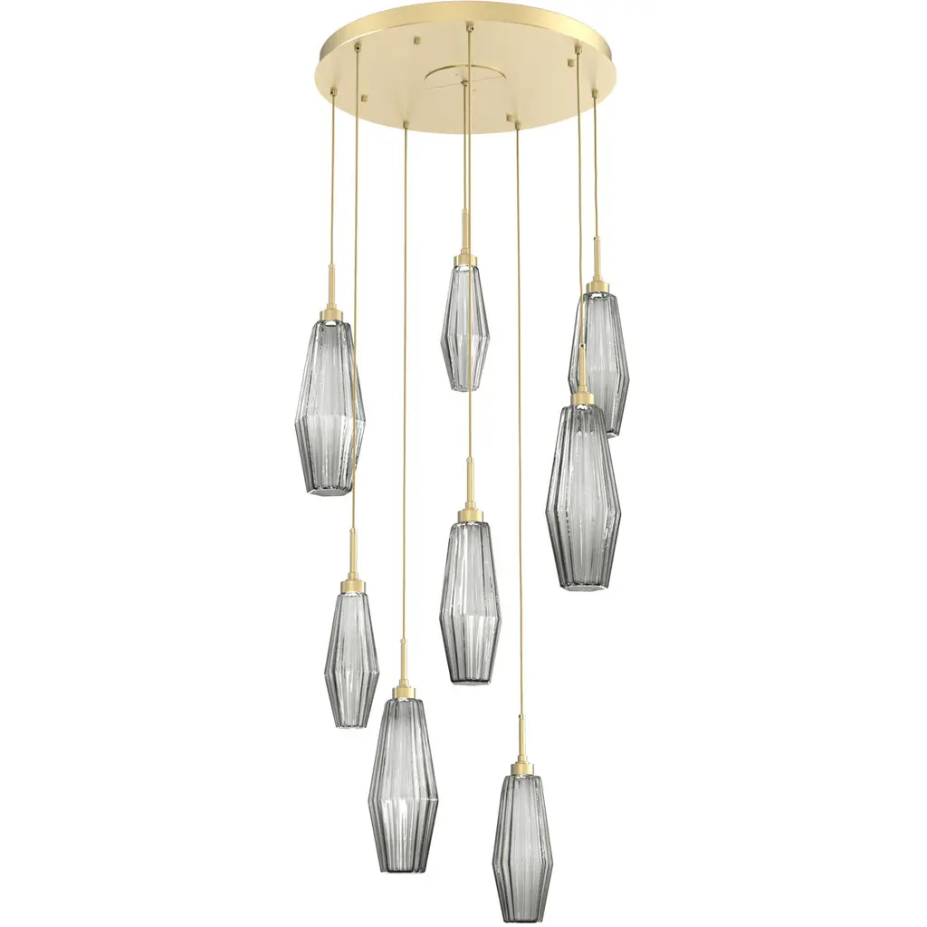 Vessel Led Gilded Brass Multi-Pendant Ceiling Light In 3000k Led, Smoke