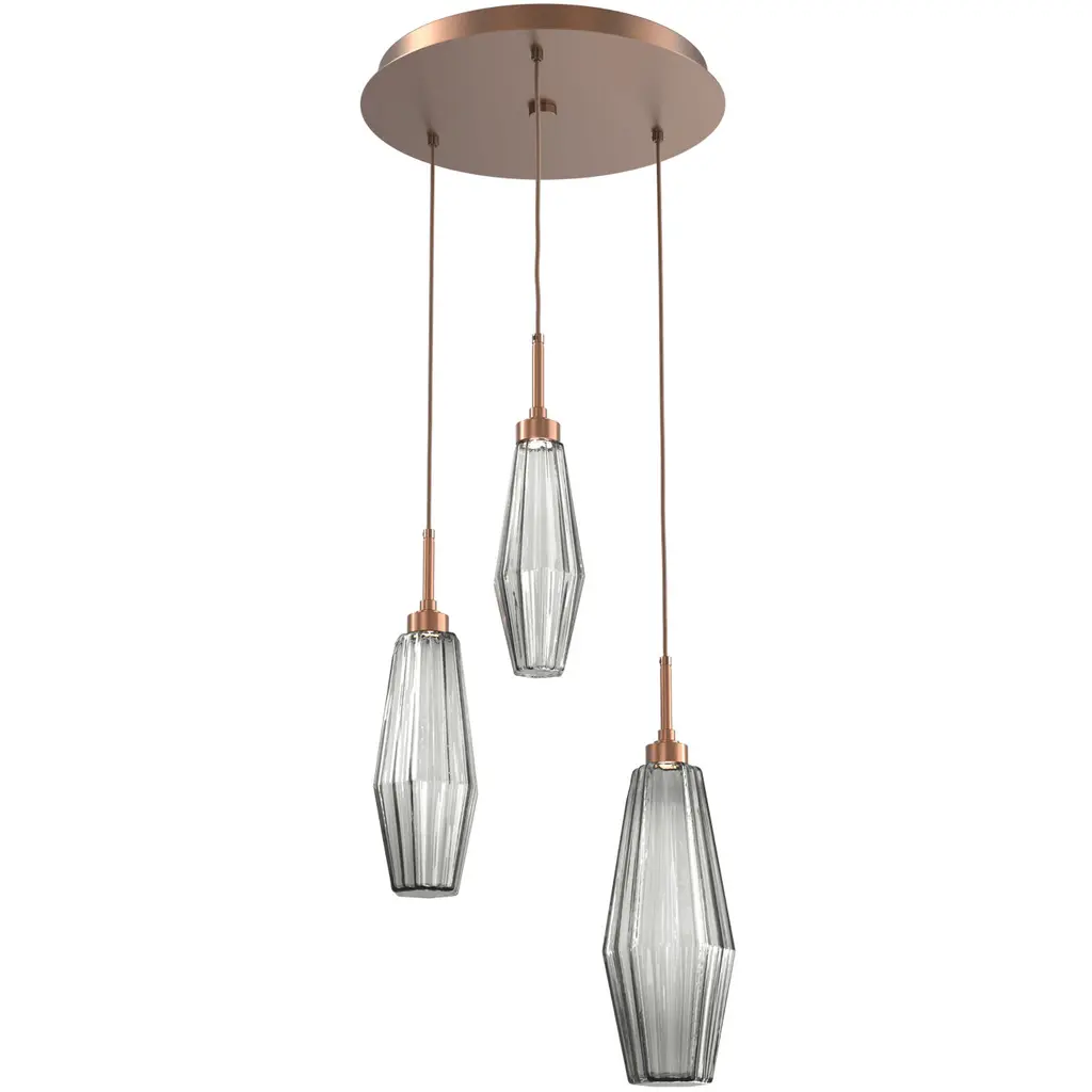Vessel 3pc Round Multi-Pendant-Gilded Brass-Smoke Blown Glass-Cloth Braided Cord-LED 2700K