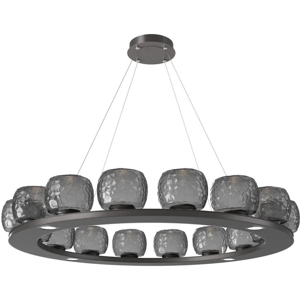 Vessel 8pc Round Multi-Pendant-Matte Black-Smoke Blown Glass-Cloth Braided Cord-LED 3000K