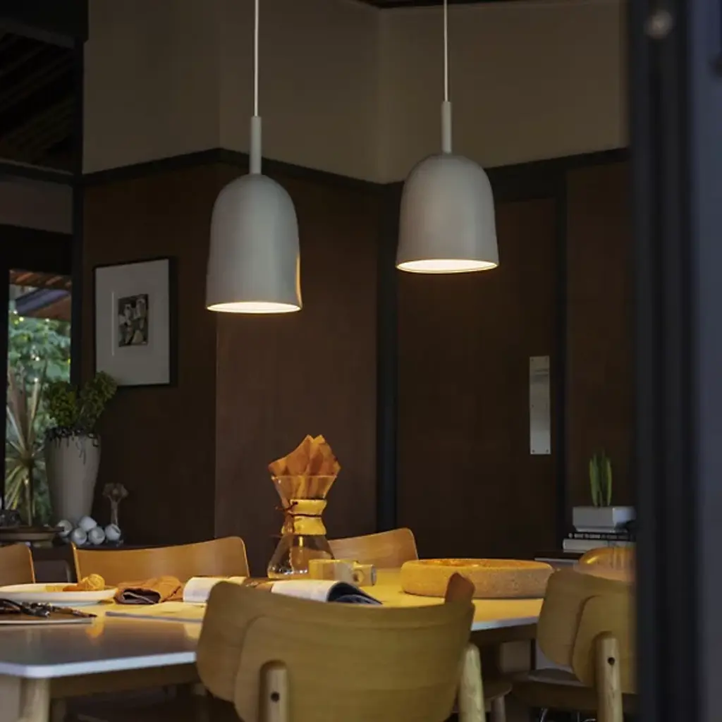The Vessel Pendant from Gantri embodies the artisanal essence of Korea's Onggi pottery, with a design that beautifully reflects the charm of handcrafted ceramics. Its organic texture and elegantly imperfect contours draw from the rich tradition of Onggi, translating this timeless craft into a modern, captivating form. It softly focuses light, creating warm, inviting pockets of illumination. Its blend of raw, refined aesthetics and contemporary design brings a calming ambiance, enhancing everyday spaces with a welcoming glow.