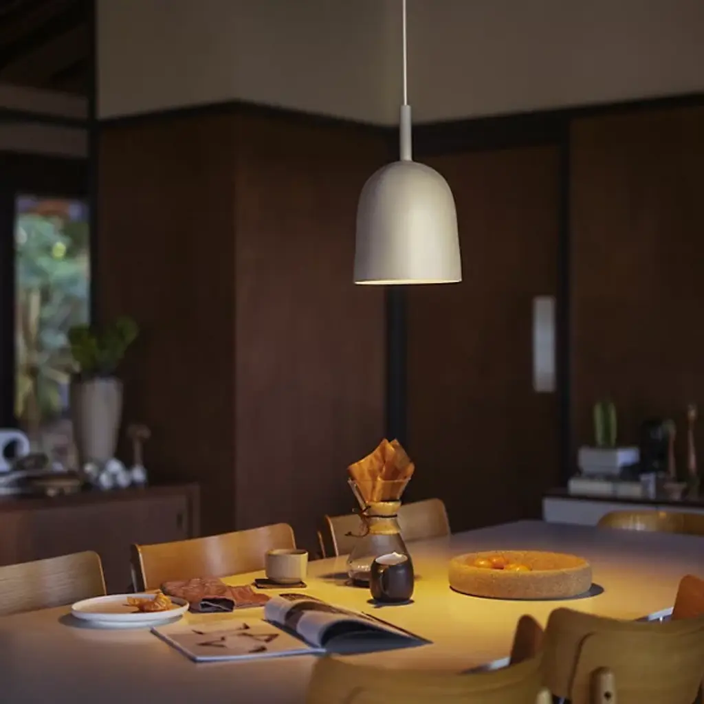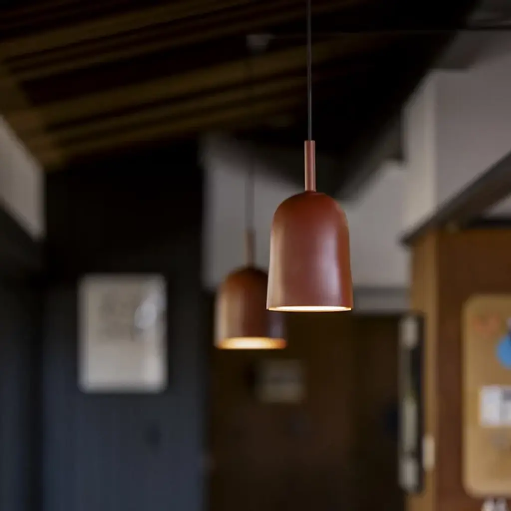 The Vessel Pendant from Gantri embodies the artisanal essence of Korea's Onggi pottery, with a design that beautifully reflects the charm of handcrafted ceramics. Its organic texture and elegantly imperfect contours draw from the rich tradition of Onggi, translating this timeless craft into a modern, captivating form. It softly focuses light, creating warm, inviting pockets of illumination. Its blend of raw, refined aesthetics and contemporary design brings a calming ambiance, enhancing everyday spaces with a welcoming glow.