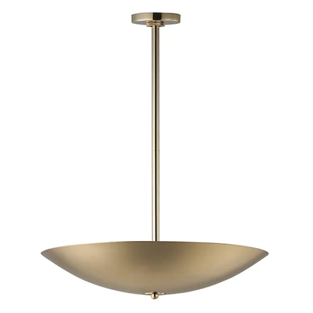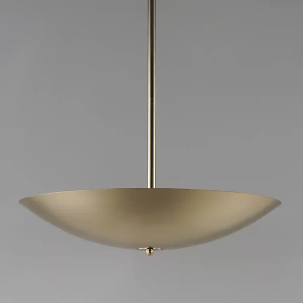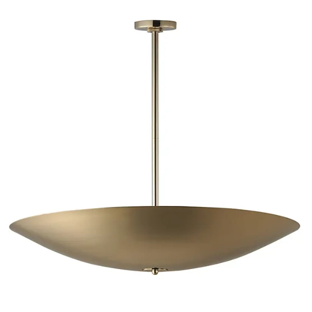 Echoing the symbolism of its namesake, the Roman goddess of hearth and home, the Vesta LED Pendant by Studio M takes classical inspiration from the fire of her temple. Large shallow disc vessels, inverted and expansive, scatter indirect light upward, casting a soft and ambient glow toward the ceiling. Practical and tasteful, the pendant features a Dim-to-Warm function integrated into the LED light engine, allowing for a transition to warmer and more soothing light as the dimmer switch is adjusted. Refined metal finishes enhance the minimalist forms with vibrancy, showcasing Mat Sanders' mastery in crafting products and spaces that effortlessly exude sophistication and warmth.