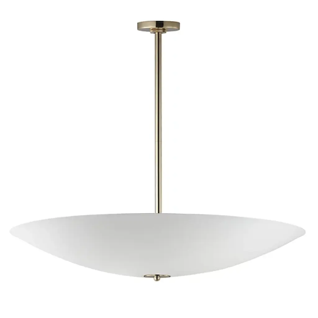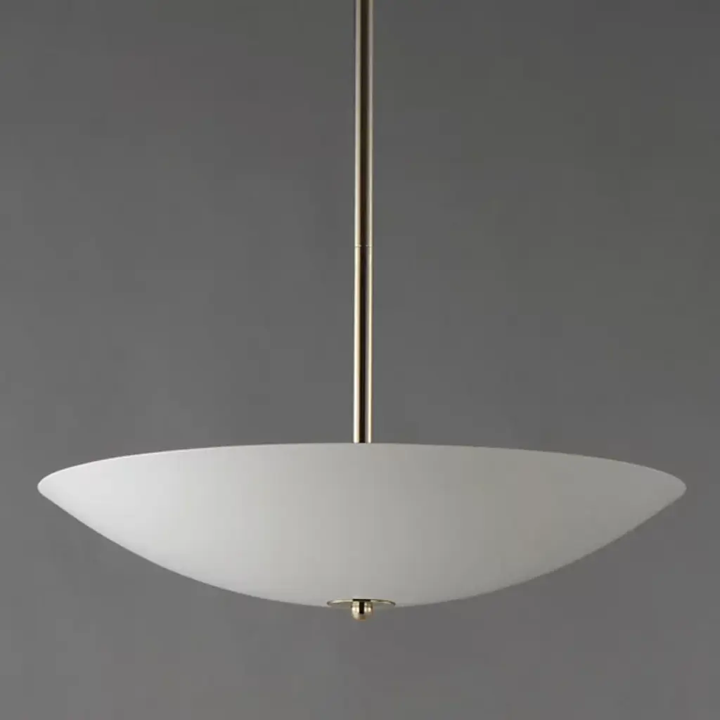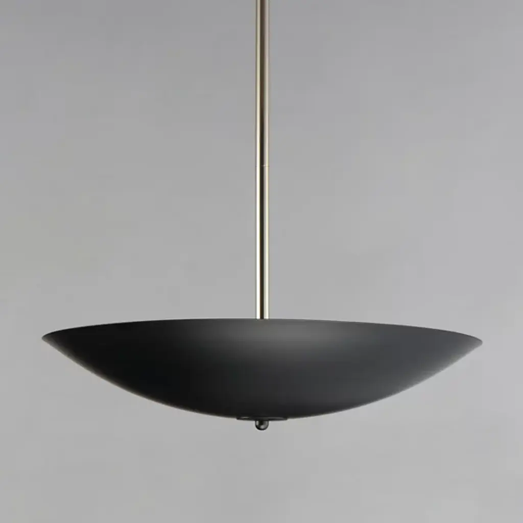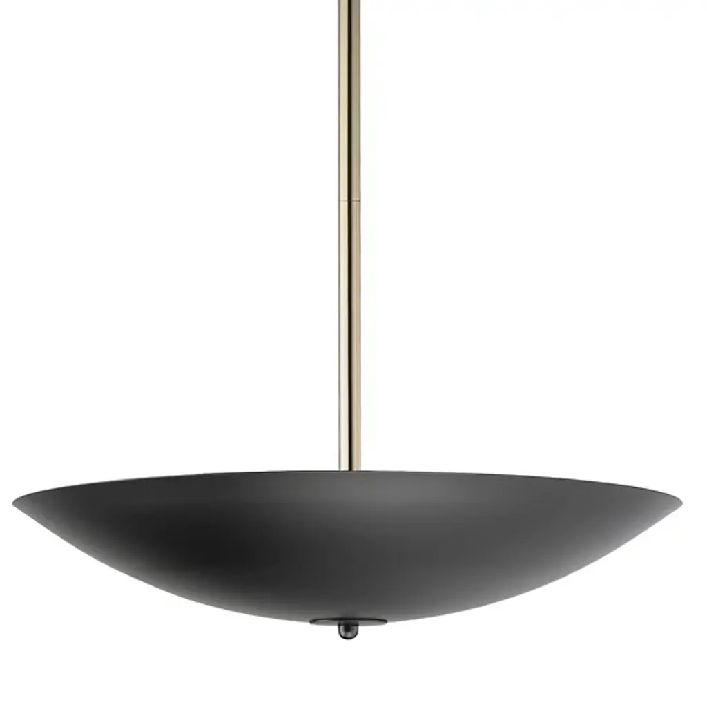 Echoing the symbolism of its namesake, the Roman goddess of hearth and home, the Vesta LED Pendant by Studio M takes classical inspiration from the fire of her temple. Large shallow disc vessels, inverted and expansive, scatter indirect light upward, casting a soft and ambient glow toward the ceiling. Practical and tasteful, the pendant features a Dim-to-Warm function integrated into the LED light engine, allowing for a transition to warmer and more soothing light as the dimmer switch is adjusted. Refined metal finishes enhance the minimalist forms with vibrancy, showcasing Mat Sanders' mastery in crafting products and spaces that effortlessly exude sophistication and warmth.