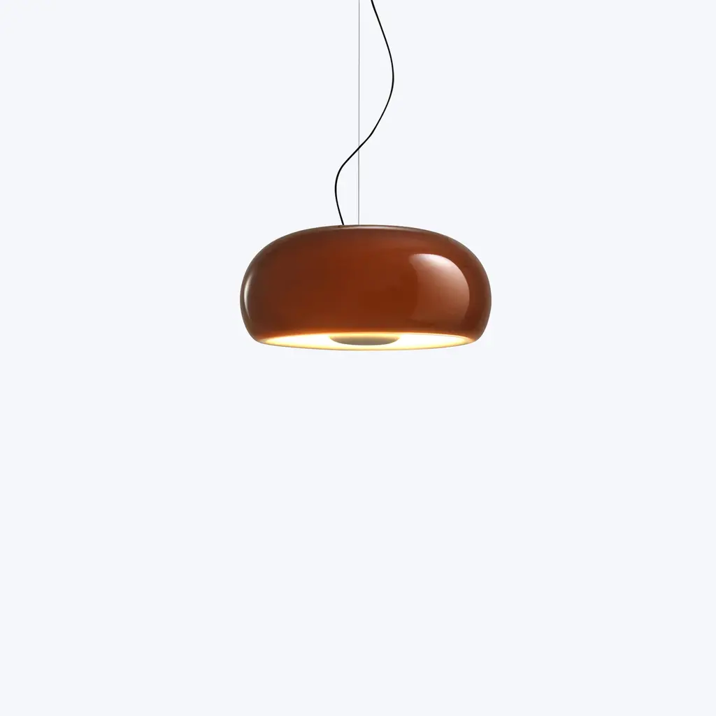 The Vetra Pendant from Marset challenges conventional lighting design with its innovative approach. At first glance this Spanish-created pendant might appear to be a traditional, old-fashioned blown-glass light. However, when switched on, it surprises with its distinctive design. Joan Gaspar’s concept places the light source outside the shade, using a closed glass diffuser as a reflector. This allows the Vetra to emit more light than expected without creating glare. Much of the light is directed downward, while the rest subtly illuminates the inside of the shade, creating a warm, inviting glow. The result is a visually dynamic lighting effect, where the lamp’s outline seems to come alive as it radiates light. Offered in white and amber, the Vetra Pendant creates a contrasting relationship between its sleek design and warm light, making it an eye-catching and functional addition to any space.