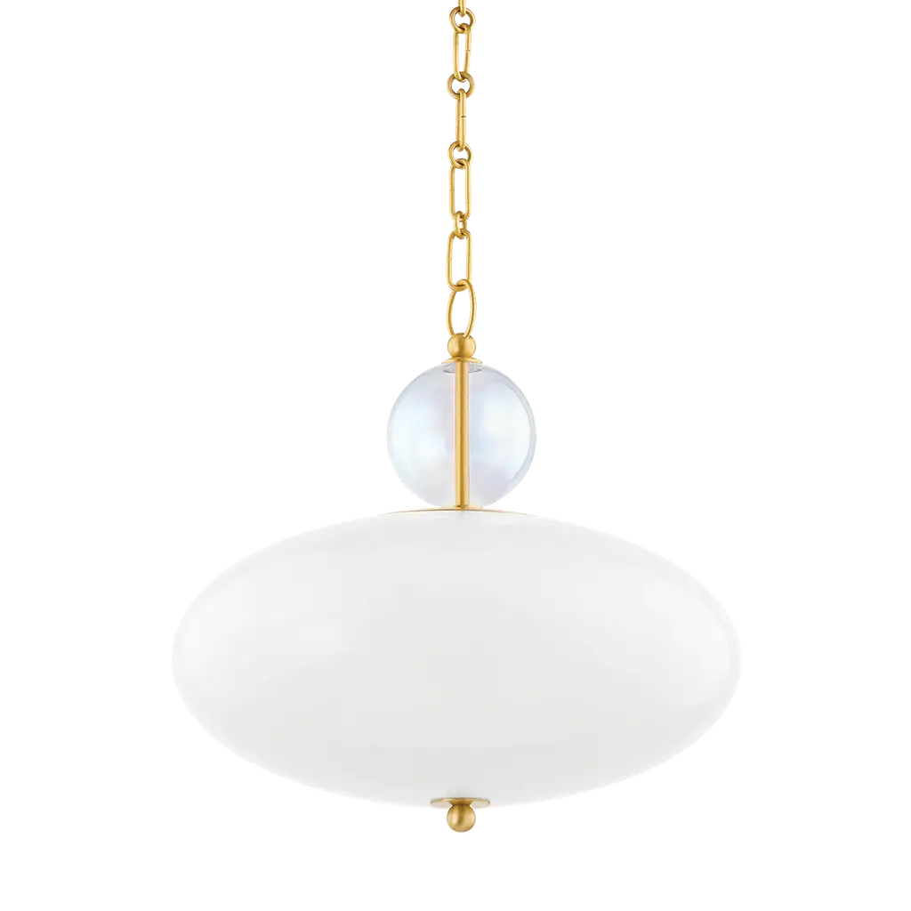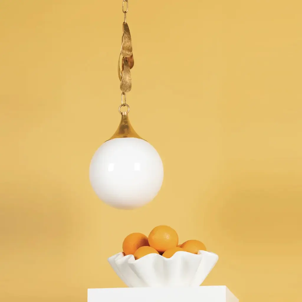 Introduce modern elegance to any room with Victoria Pendant Light from Mitzi by Hudson Valley. Featuring a chic three-light chandelier with smooth, curved lines and petal-shaped accents in Vintage Gold Leaf, this mobile-inspired design adds a sense of movement to your space. Elevate dining, living, and sleep spaces with the familiar silhouette of opal glossy globe pendant with a touch of sophistication. Highlights