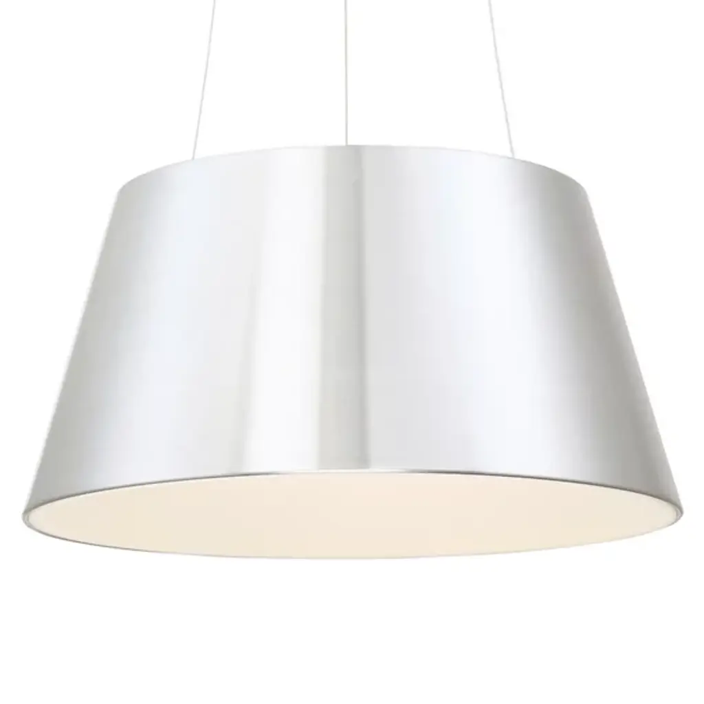 Breathe some life into your living space with the Vida LED Drum Pendant by dweLED. Its tapered, spun Aluminum body offers a clean, quality appearance that houses a recessed Frosted Acrylic diffuser with integrated LEDs. The fixture's funneled shape provides a more direct lighting experience while effectively concealing its source, creating an ambiance that is both functional and pleasant.