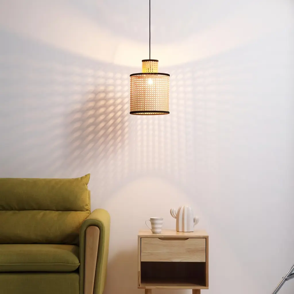 Looking to add a unique light fixture to your home? Look no further than the Nakuv Pendant Light. Bohemian meets modern design in the rattan-style PVC lamp shade with velvet accents stitched around the rims. The adjustable cord ensures the perfect fit for any space. This light is the ideal addition to any modern, transitional or bohemian home, and is perfect for hanging over your kitchen island, your dining table or in your entryway. For a warm and inviting look, we recommend using a warm colored or vintage bulb. Bulb not included. Don’t forget to grab a few to light up larger spaces!