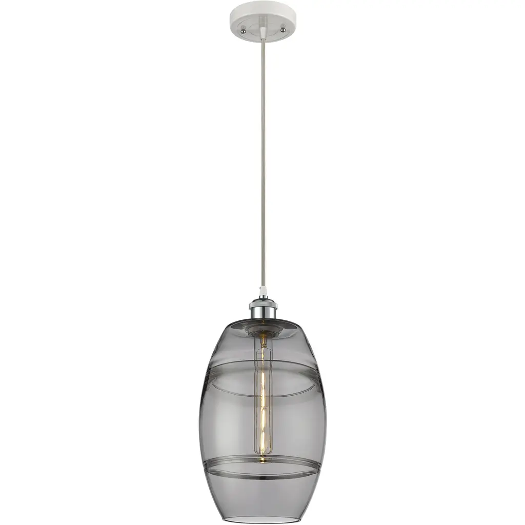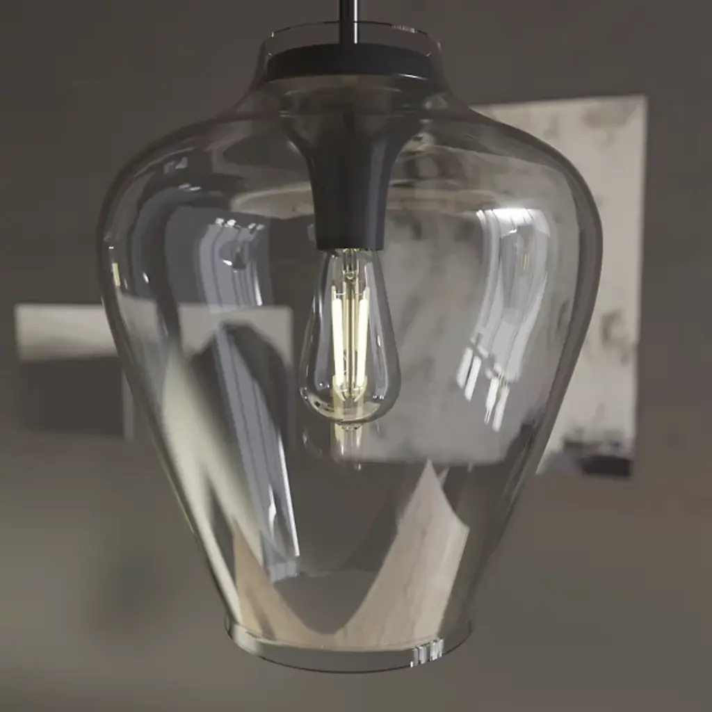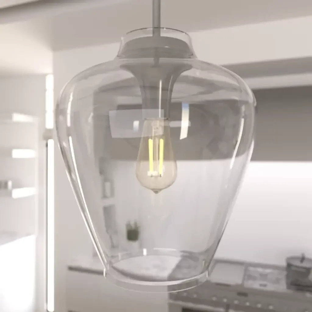 Take a clean and graceful approach to decorating your modern home with the Vidria Pendant from Hunter Fans. Connecting directly to the ceiling, this piece starts with a disc-shaped mount and a slim downrod that lead to a single crisp, downward-facing bulb held within a wide clear glass shade. Resting at the center with plenty of room, the light diffuses through the glass with ease, adding a bright and welcoming ambiance whenever in use.