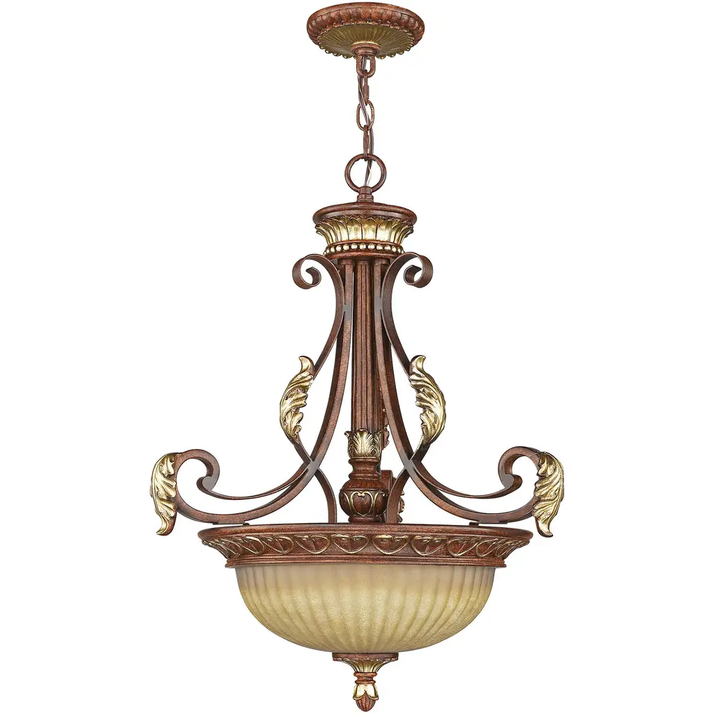 Villa Verona 3 Light 19 Inch Verona Bronze With Aged Gold Leaf Accents Inverted Pendant Ceiling Light