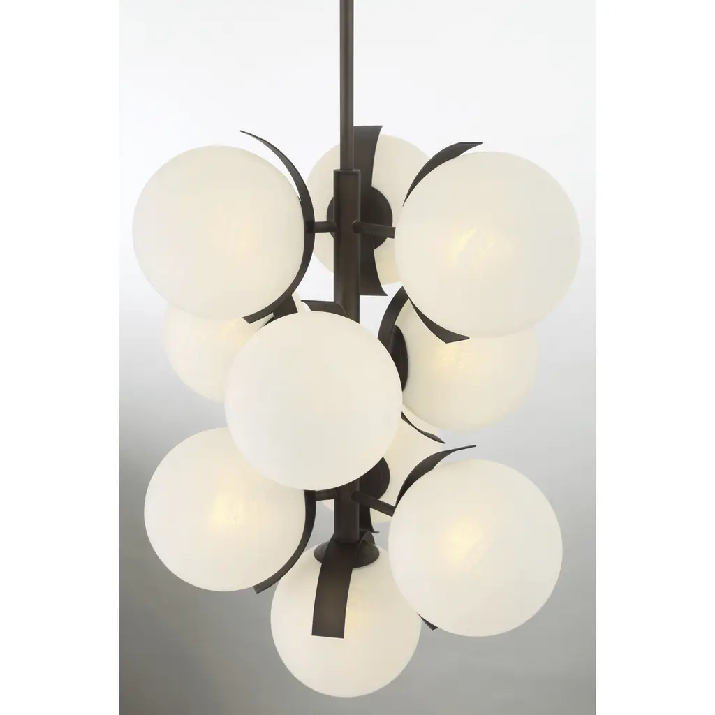 Vino 10 Light 24.75 Inch Dark Bronze Pendant Ceiling Light In White Etched Alabaster Glass