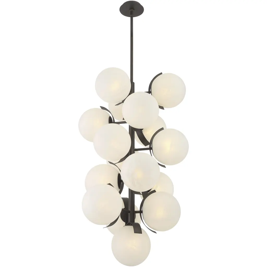Vino 16 Light 24.75 Inch Dark Bronze Pendant Ceiling Light In White Etched Alabaster Glass