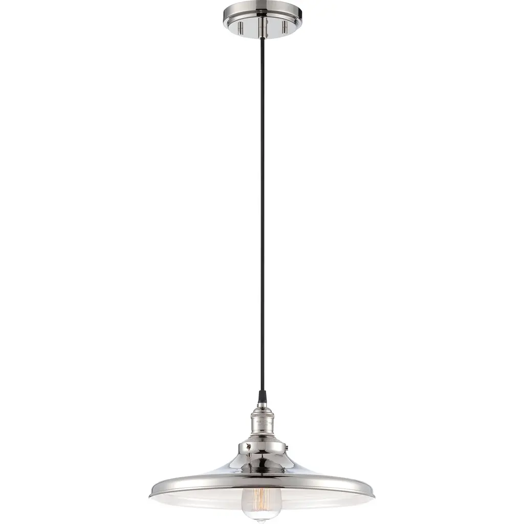 Vintage 1 Light 14 Inch Polished Nickel Pendant Ceiling Light