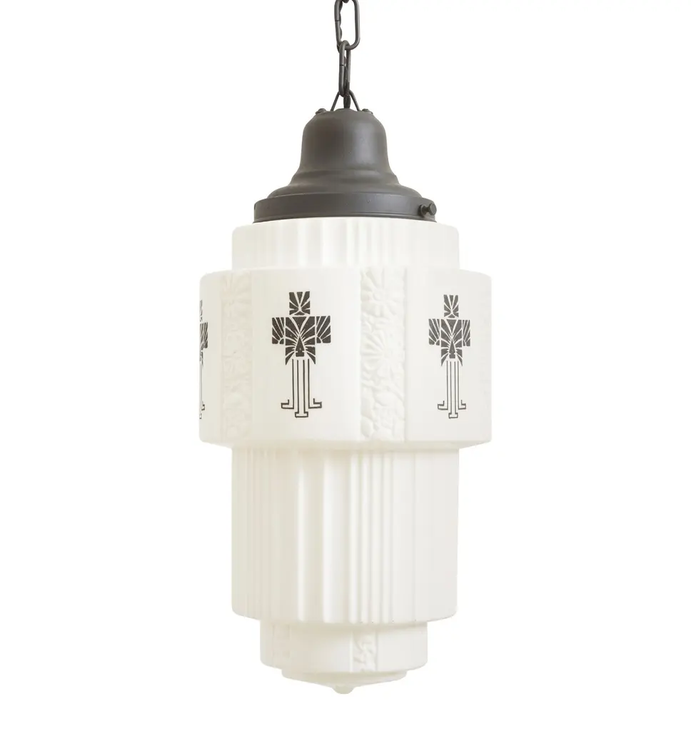 Vintage Art Deco Chain Pendant With Stenciled Cake Shade