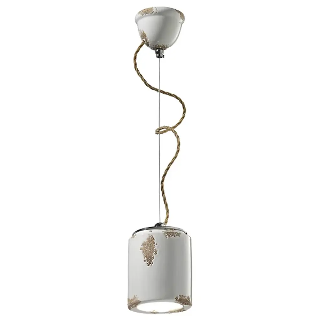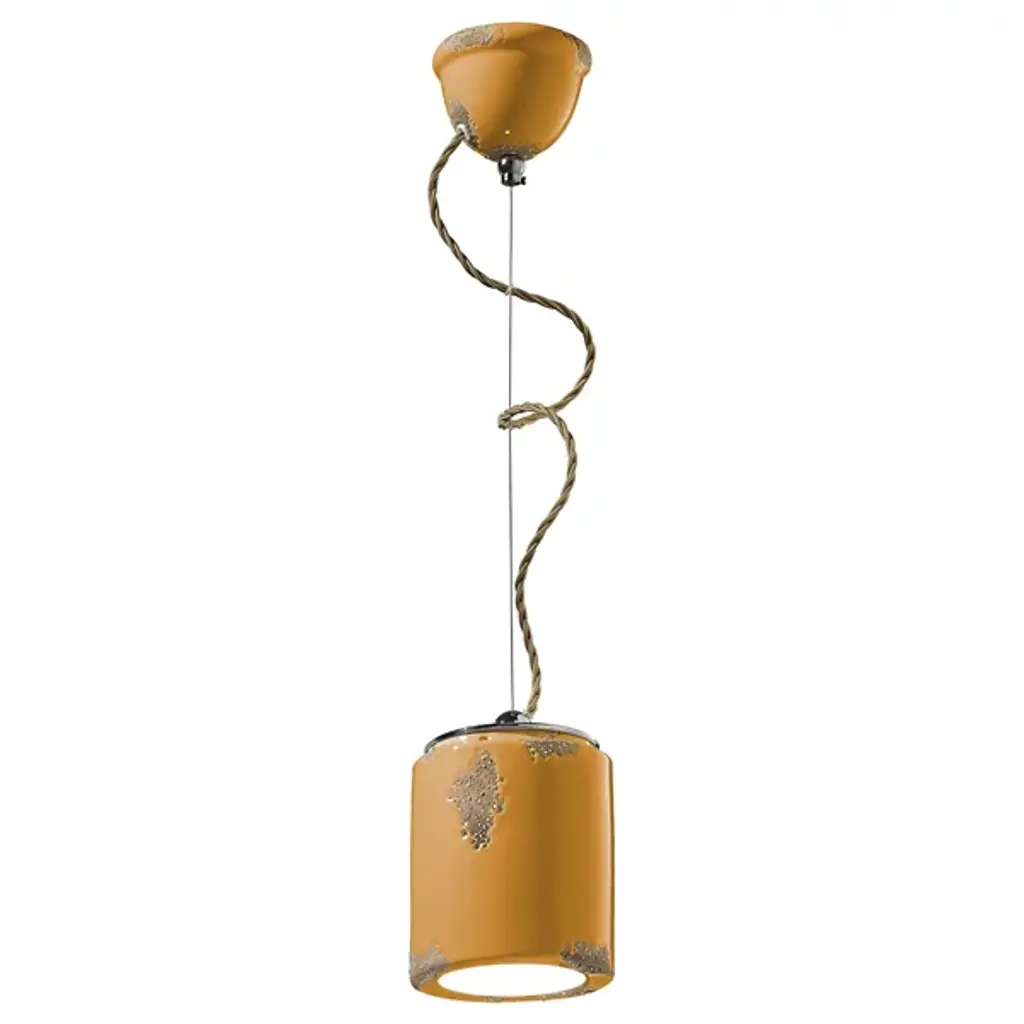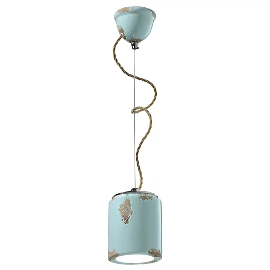 The Vintage Cylinder Pendant is an eye-catching luminary presented by Ferroluce. The piece is handmade in Italy. It features distressed elements across the glossy surface of its exterior, all while the light flowing out from the pendant's opening provides a pleasant highlight to the décor and activities that occur below. Display the Vintage Cylinder as a solo piece or in multiples among locales of choice to bring your illumination design to fruition.