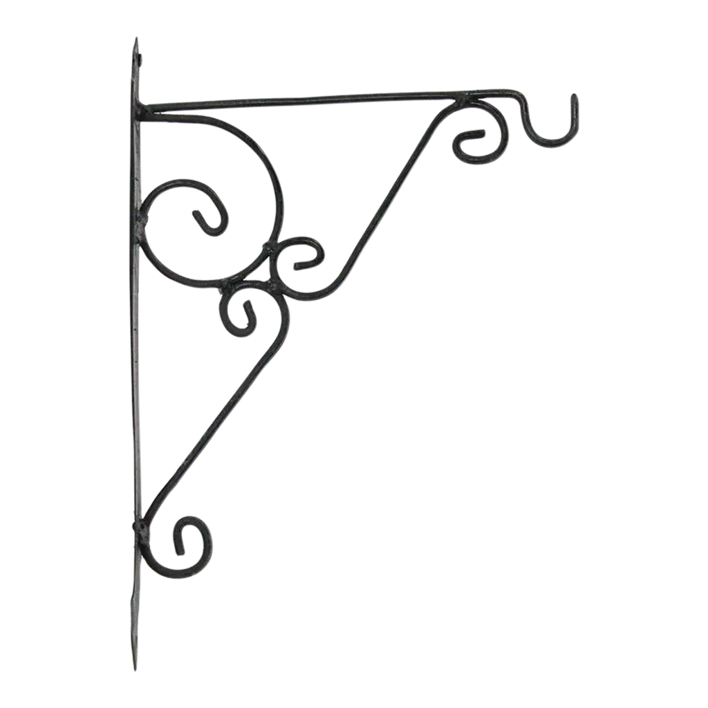 Vintage beautiful hand crafted large iron scroll design wall bracket with rusted finish. Perfect for hanging lights or plants outdoors. Each slightly unique in aged fish and each sold individually.