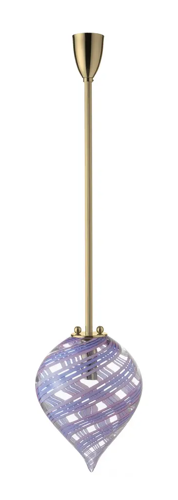 Viola pendant balloon canne by Magic Circus EditionsDimensions: H 36 x W 27 x D 27 cmMaterials: fluted brass, mouth-blown glassColour: violaAvailable finishes: Brass, nickelAvailable colours: rosa rosso, senape bianco, blu, senape grigio, nero bianco, violaAll our lamps can be wired according to each country. If sold to the USA it will be wired for the USA for instance.Rethinking, reimagining, redesigning familiar objects that we look at every day without ever really seeing them and using light to tell stories, this how Marie-Lise Féry sees her work. Offering a new take on our urban heritage, changing our perspective through her work on scale and usage. Since 2015, Magic Circus Éditions has been setting the world of lighting ablaze, creating airy, playful and magical designs that merge retro with sleek and contemporary. A free-spirited antiquarian, founder Marie-Lise Féry draws inspiration from the world of cabarets and the magic of the circus to give shape to imaginative, fun and playful collections. The air of magic she breathes into her work reveals a wealth of interpretations and widens possibilities for creative interiors. The combination of traditional know-how — outstanding craftsmanship — and her imaginative take on historical, everyday objects lends an unexpected and charming quality to her creations.Féry’s lights are designed just like magic lanterns — precursor to modern-day cinema —, inspiring wonder through oversized, seemingly weightless compositions and understated references. Each collection has its own inspiration: the first models of street lighting for Collection 01; the happy memories of funfairs, sweets and balloons for her latest collection Balloon; the Far East for Collection 02; and the colourful, carefree spirit of the 1970s for Pop-Up, released in 2019. Magic Circus Éditions draws on airy designs, dream-like inspirations, colours and fun to create a sense of enchantment.Magic Circus Éditions founder Marie-Lise Féry was born in Paris. After studyingart business, she moved to New York to start her career. Fascinated by the city’s architecture, she found an endless source of inspiration in the Big Apple’s monumental decors. Returning to France to settle down in Lyon, she opened an antiques gallery named Un Château en Espagne, and started telling her own stories through objects she gleaned on markets all around the country. A way for her to perpetuate her mother’s motto: “Objects with a soul will always belong”. Since 2015, the year she established Magic Circus Éditions, she has moved on to lighting as a new medium for telling her stories, bringing the magic of the show into home interiors. With her love for the circus, turn-of-the-century cabarets and music halls, Marie-Lise Féry’s love of unusual objects has remained strong, but now prefers to focus her attention on pieces she has imagined herself. With a fun and light-spirited approach, she creates a bold visual effect that elicits instant attraction. She collaborates with some of Europe’s greatest artisans, from Prague and Murano to Clermont-Ferrand, working for instance with a Czech company specialising in sculpting glass using a diamond-blade saw, or an auto body shop renowned for their work with lacquers. The refinement of shapes and finishes, bespoke designs and technical excellence all contribute to creating pieces that inspire surprise and wonderment. In the manner of Wes Anderson in Grand Budapest Hotel, blending together elegance, humour and unexpected details, her designs never fail to surprise. Attentive to the effect of her designs both in daylight and at night, Marie-Lise Féry takes us on a journey through space (from outside to inside) and time (from yesterday to today).
