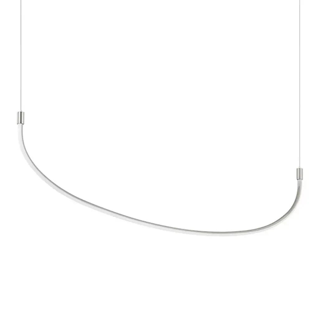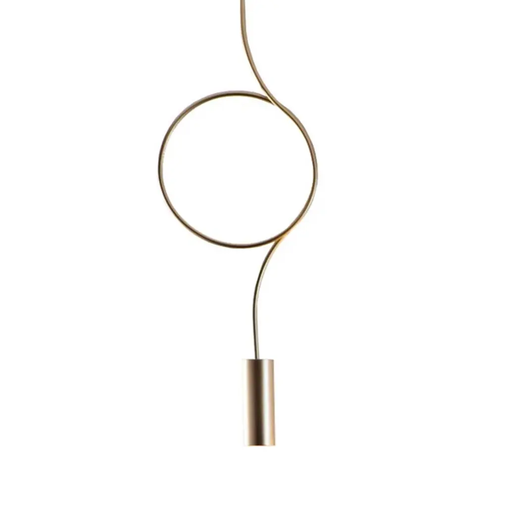 Slender, curving lines create a refined accent piece for modern spaces. The Violino C1/C3 Pendant by Antonangeli is designed by Gabi Peretto and is comprised of a single looping metal wire that descends from a rounded canopy. Its delicate design culminates in a cylindrical enclosure to house its LED light source. Casting a soft downlight, it captures a room with its slim, but lively, aesthetic as it offers an intimate ambiance.