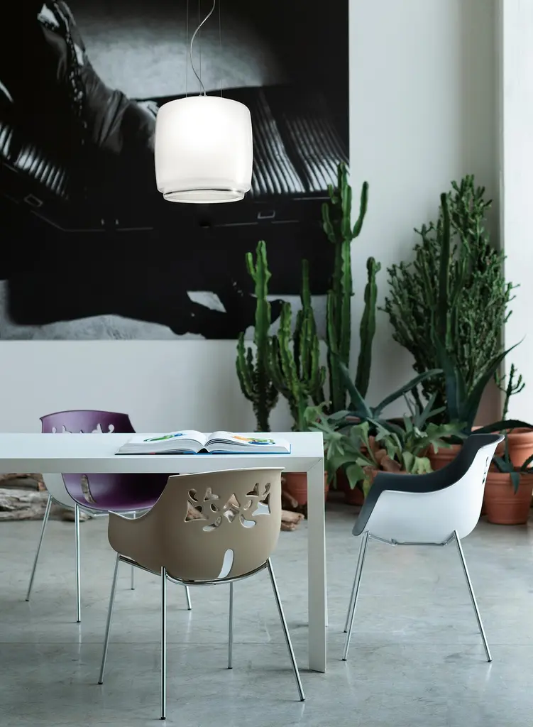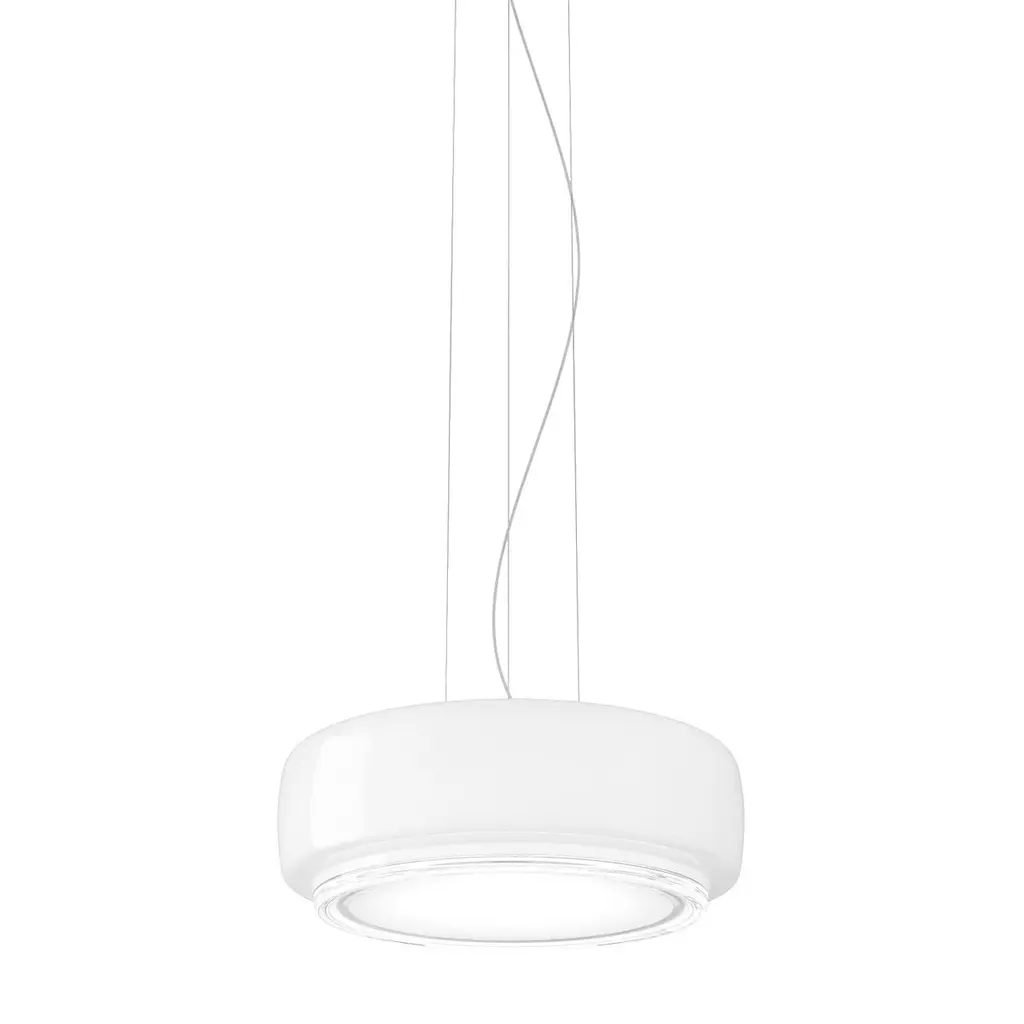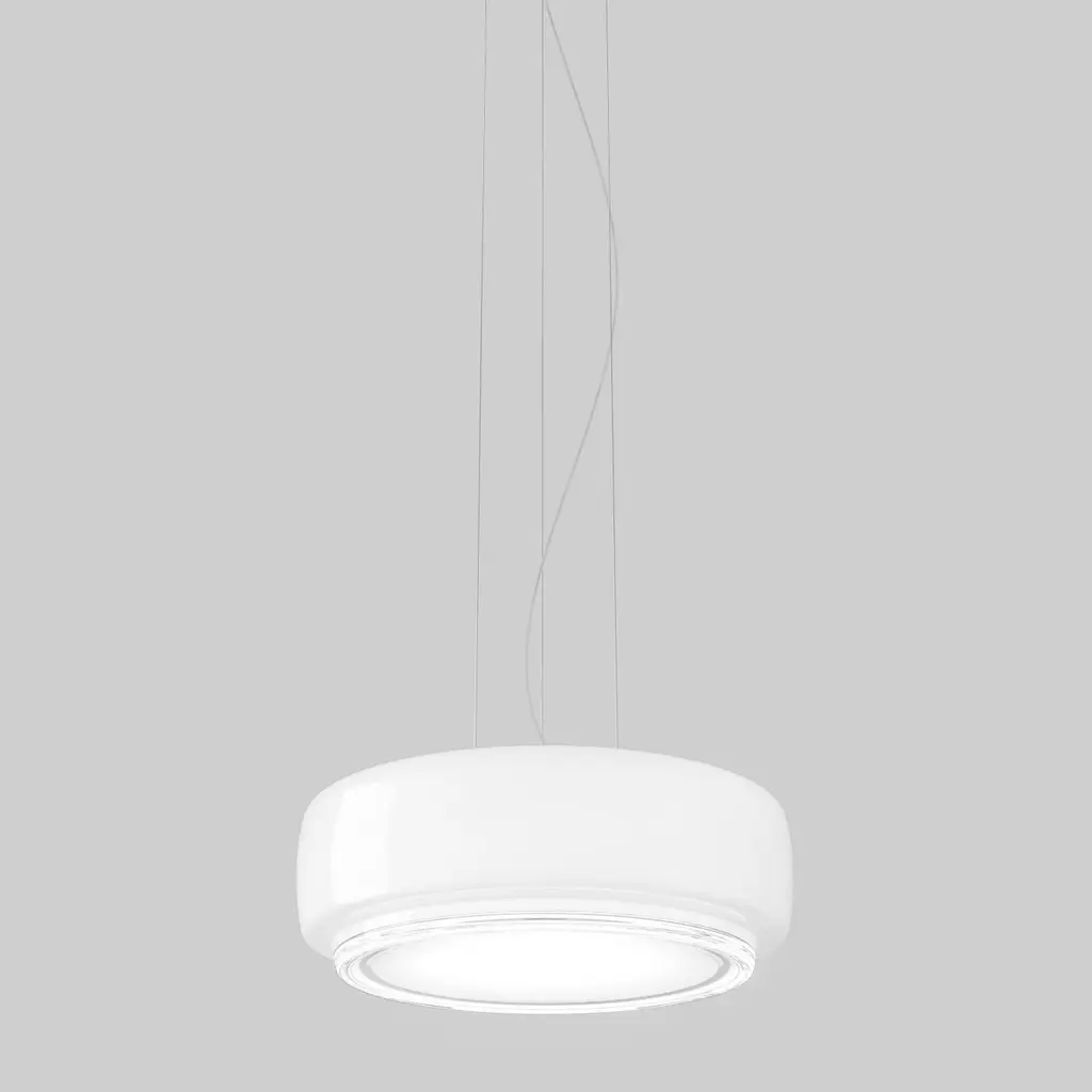 A collection that represents the idea of a volume in motion generating a new one. The concept is also a reminiscence of the process of glass blowing in which the incandescent glass contains light even before it has a definite form.Specifications:Material: GlassLight source: E26 ULNo of bulbs: 2×60W E26 UL (120V/60HZ)Dimmer: DIM 1Year: 2011Glass finish: White CrystalFrame finish: Glossy whiteDimensions: Ø 45 x 16 H cmCable length: 200 cmAvailable in other light source options: LED L22GG UL - $ 1588, LED L23GG UL - $ 1588, LED L32GG UL - $ 1588, LED L33GG UL - $ 1588Available in other No. of bulb option: 1×19W (39V)Available in other lumens option: 2850 lmAvailable in other kelvin options: 2700 K, 3000 KAvailable in other dimmer options: DIM 2, DIM 3Available in other size options: Small (Ø 16cm), Medium (Ø 35cm)Please inquire about customization options.