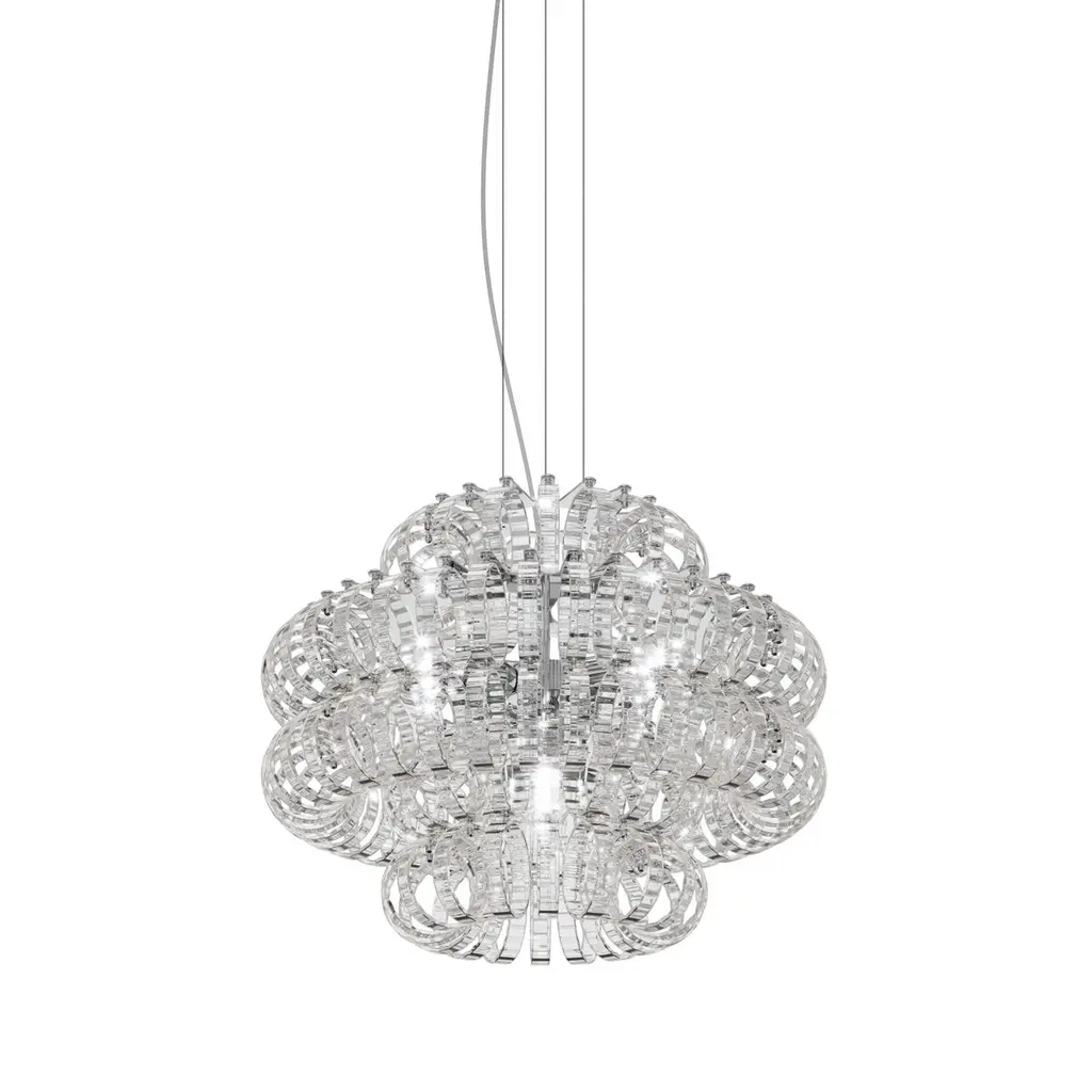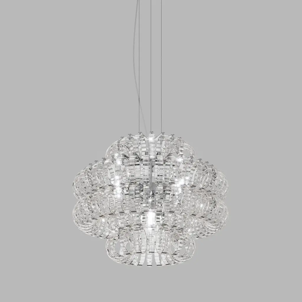 Vistosi Ecos Pendant Light In Crystal Striped Glass And Glossy Chrome Frame