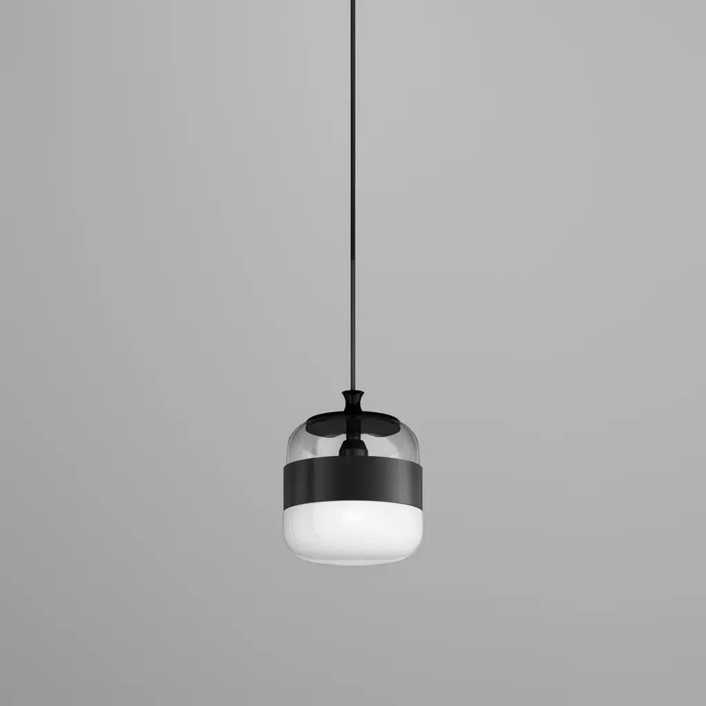 A collection of lamps made from a single piece of blown glass, whose particular workmanship, though, allows a double chromatic effect: transparent at the top, satin effect at the bottom. The following combinations of glass with metal ring are now available: white glass combined with matt black ring, smoky glass with brown ring, amber glass with painted brass ring. A new transparent crystal glass finish with copper or matt black ring is also available.Specifications:Material: GlassLight source: E26 ULNo of bulbs: 1×60W E26 UL (120V/60HZ)Dimmer: DIM 1Year: 2015Glass finish: White BlackFrame finish: Matt Black 1Dimensions: Ø 20 x 24 H cmCable length: 200 cmAvailable in other glass finish options: Crystal Black, Smoky Brown, Amber Brass, Crystal CopperAvailable in other frame finish option: Rame/NeroAvailable in other light source options: LED L22CC UL - $ 964, LED L23CC UL - $ 964, LED L32CC UL - $ 964, LED L33CC UL - $ 964Available in other No. of bulb options: 1x12W (35 V) for LED L22CC UL, LED L23CC UL, LED L32CC UL, LED L33CC ULAvailable in other lumens options: 1500 lm for LED L22CC UL, LED L23CC UL; 1600 lm for LED L32CC UL, LED L33CC ULAvailable in other kelvin options: 2700 K for LED L22CC UL, LED L23CC UL; 3000 K for LED L32CC UL, LED L33CC ULAvailable in other dimmer options: DIM 2 for LED L22CC UL, LED L32CC UL; DIM 3 for LED L23CC UL, LED L33CC ULAvailable in other size options: Medium (Ø 23cm), Large (Ø 40cm)Please inquire about customization options.