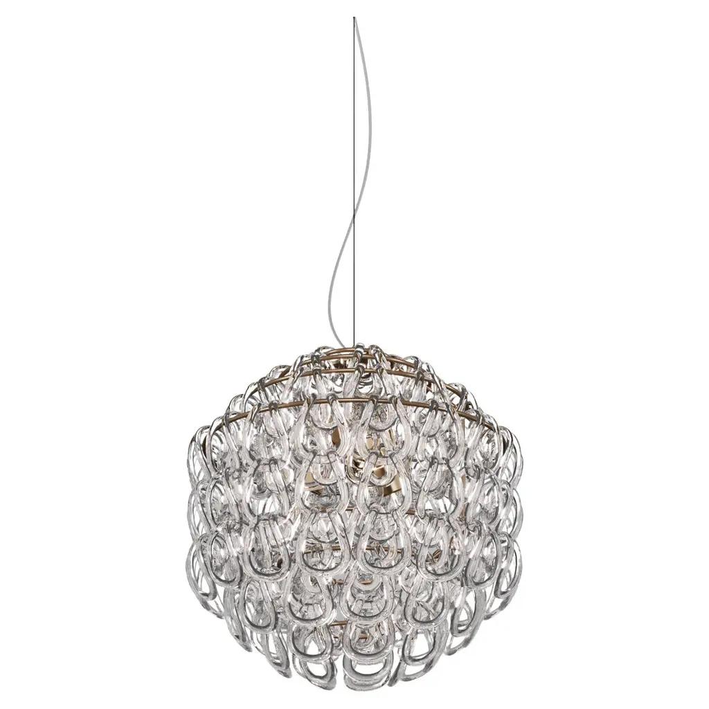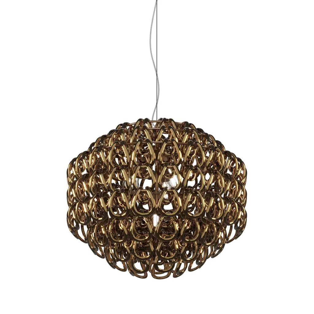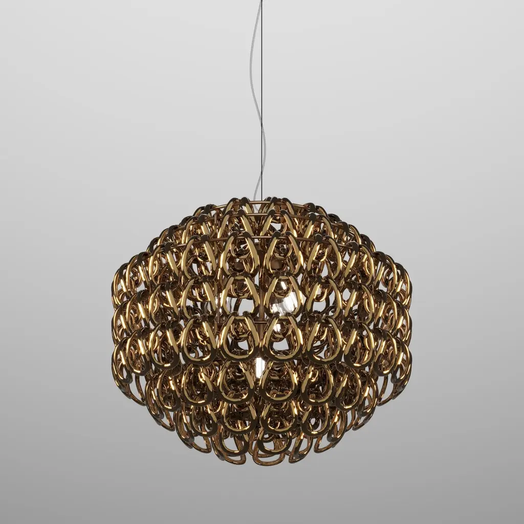 A pure element: the crystal hook. It is the intuition of a master of Italian design, Angelo Mangiarotti, who in 1967 created the best seller of the Vistosi catalogue, Giogali. An iconic interweaving applied to the version one prefers. Specifications:Material: Glass, MetalLight source: E26 UL No of bulbs: 4x60W E26 UL (120V/60HZ)Dimmer: DIM 1Year: 1967Glass finish: Crystal BronzeFrame finish: Matt bronze 1Dimensions: Ø 65 x 54 H cmCable length: 200 cmAvailable in other glass finish options: Black, Crystal Silver, Crystal Amber, Crystal Smoky, Crystal Black Nickel, White, Crystal Gold, Crystal Copper, Crystal TransparentAvailable in other frame finish option: Glossy chromeAvailable in other size options: Ø 35, Ø 50, Ø 85, 50x50, Ø 55, 120x60, 120x40x50, 120x40x80, 80x30 cmPlease inquire about customization options.