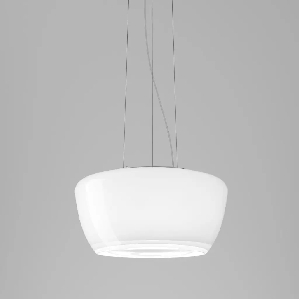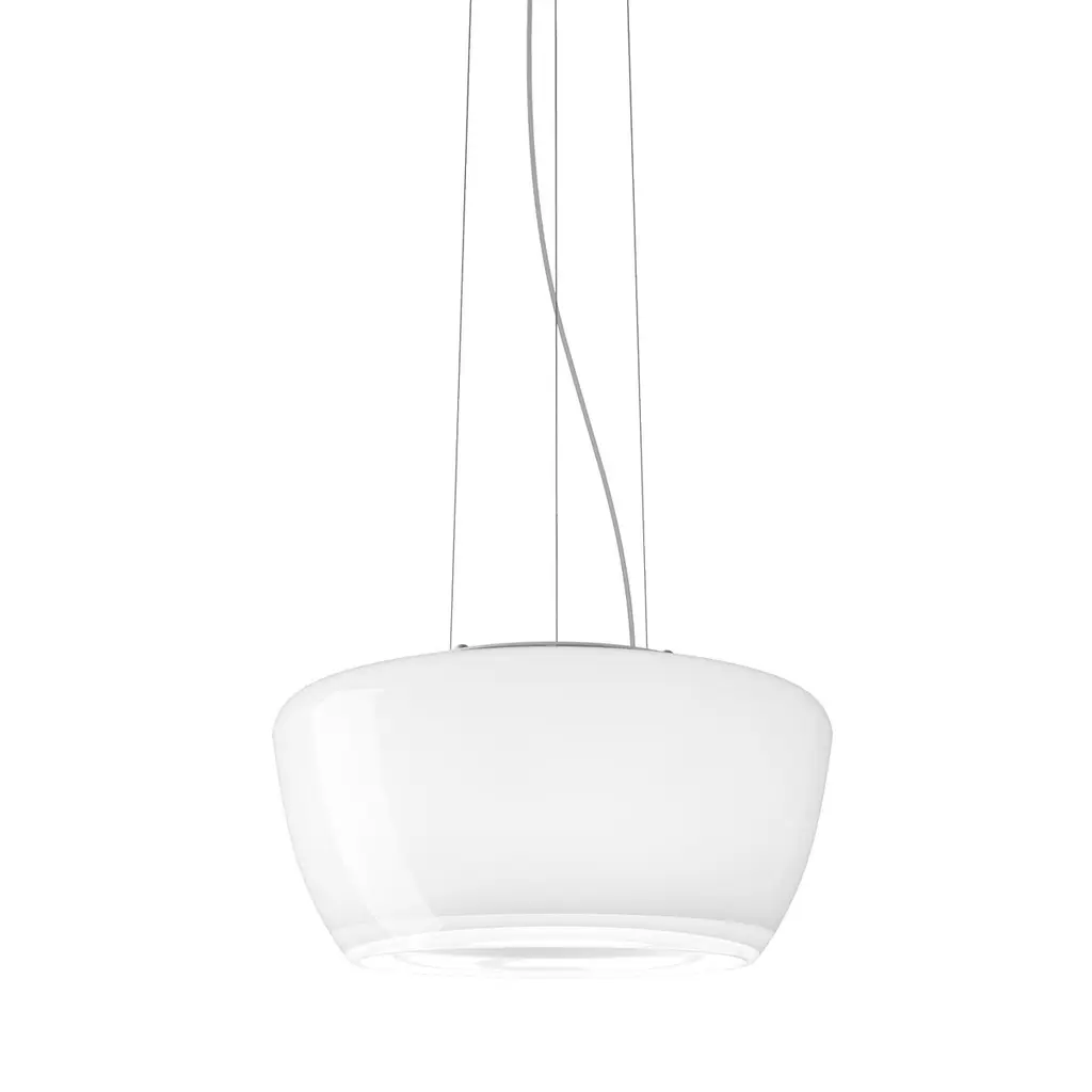 A collection that represents the illusion of a surface created by the implosion of a volume. The glass, due to its thickness, shows a gradation of multiple layers of white and transparent crystal.Specifications:Material: GlassLight source: E26 UL No of bulbs: 3×60W E26 UL (120V/60HZ)Dimmer: DIM 1Year: 2011Glass finish: White CrystalFrame finish: Glossy WhiteDimensions: Ø 50 x 25 H cmCable length: 200 cmAvailable in other light source options: LED L22OO UL - $ 1930, LED L23OO UL- $ 1930, LED L32OO UL- $ 1930, LED L33OO UL- $ 1930Available in other No. of bulb option: 1×19.5W (39V) for LED L22OO UL, LED L23OO UL, LED L32OO UL, LED L33OO ULAvailable in other lumens option: 2850 lm for LED L22OO UL, LED L23OO UL, LED L32OO UL, LED L33OO ULAvailable in other kelvin options: 2700 K for LED L22OO UL, LED L23OO UL; 3000 K for LED L32OO UL, LED L33OO ULAvailable in other dimmer options: DIM 2 for LED L22OO UL, LED L32OO UL; DIM 3 for LED L23OO UL, LED L33OO ULAvailable in other size options: Ø 16 cm, Ø 38 cmPlease inquire about customization options.