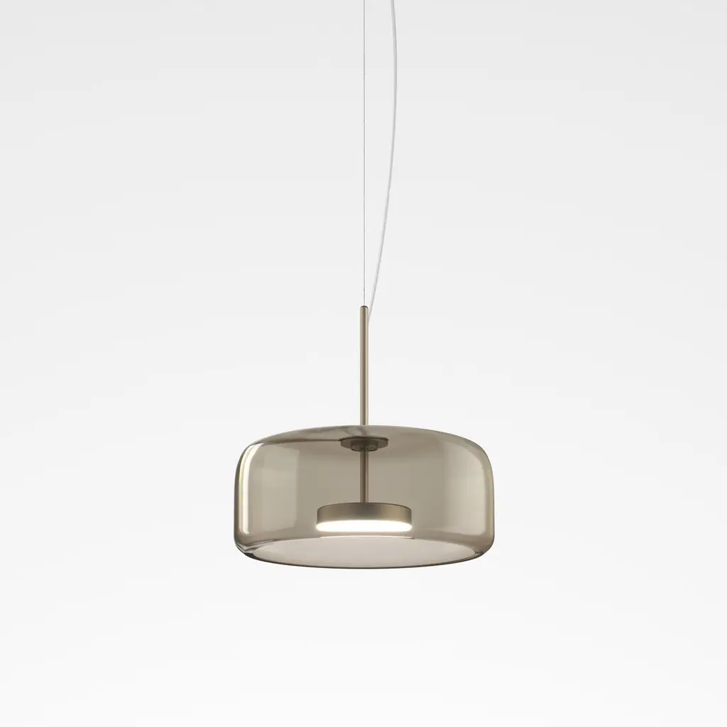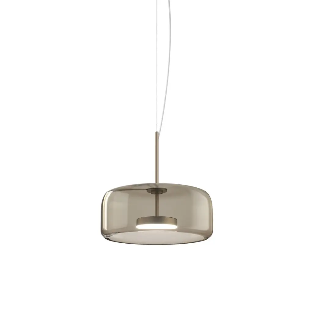 The elegant and delicate look of the blown glass finds a new dimension in Jube. Two glass units placed side by side, so perfectly assembled, that they look like a unique piece. A sinuous lamp, with tone-on-tone colours that give it a precious, vintage mood.Specifications:Material: GlassLight source: LED L2202 ULNo of bulbs: 1x13W L2202 UL (37V)Dimmer: DIM 2Lumen: 2000 lmKelvin: 2700 KYear: 2017Glass finish: Smoky TransparentFrame finish: Matt steelDimensions: Ø 38 x 17 H cmCable length: 200 cmAvailable in other glass finish options: Light Amethyst Transparent, Crystal Transparent, Burned Earth Transparent, Old Green TransparentAvailable in other frame finish option: Matt gold 2Available in other light source options: LED L2302 UL - $ 1278, LED L3202 UL - $ 1278, LED L3302 UL - $ 1278Available in other kelvin option: 3000 KAvailable in other dimmer option: DIM 3Please inquire about customization options.