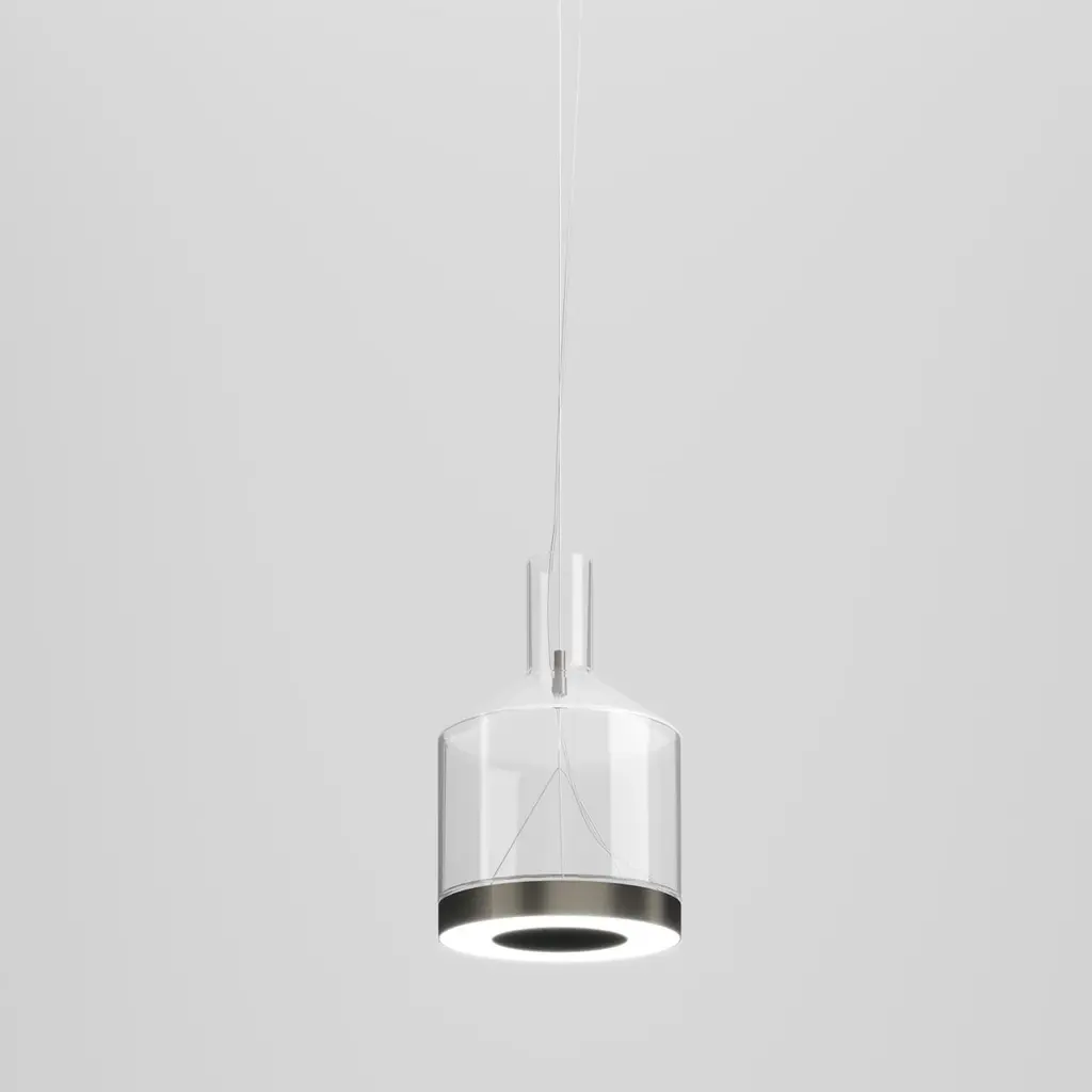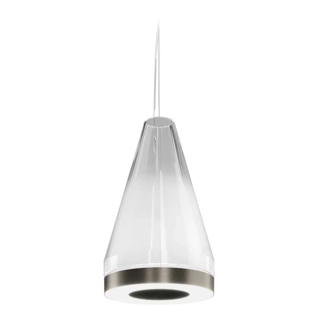 The Medea collection is characterized by geometric and simple shapes. The LED source illuminates the surface and the glass at the same time, bringing towards the ceiling a part of the soft-colour light. Mounted in clusters or individually, they show a strong stylistic character, and almost become sculptures.Specifications:Material: GlassLight source: LED L2204 ULNo of bulbs: 1×14W L2204 UL (28 V)Dimmer: DIM 2Lumens: 2000 lmKelvin: 2700 KYear: 2019Glass finish: Crystal TransparentFrame finish: Matt SteelDimensions: Ø 22 x 34 H cmCable length: 200 cmAvailable in other glass finish option: White ShadedAvailable in other light source options: LED L2304 UL - $ 1184, LED L3204 UL - $ 1184, LED L3304 UL - $ 1184Available in other kelvin option: 3000 KAvailable in other dimmer option: DIM 3Please inquire about customization options.