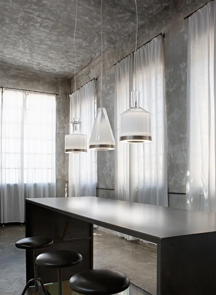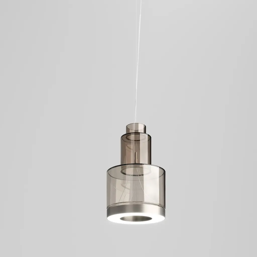 The Medea collection is characterized by geometric and simple shapes. The LED source illuminates the surface and the glass at the same time, bringing towards the ceiling a part of the soft-colour light. Mounted in clusters or individually, they show a strong stylistic character, and almost become sculptures.Specifications:Material: GlassLight source: LED L2204 ULNo of bulbs: 1×14W L2204 UL (28 V)Dimmer: DIM 2Lumens: 2000 lmKelvin: 2700 KYear: 2019Glass finish: Smoky TransparentFrame finish: Matt SteelDimensions: Ø 22 x 34 H cmCable length: 200 cmAvailable in other glass finish option: White ShadedAvailable in other light source options: LED L2304 UL - $ 1184, LED L3204 UL - $ 1184, LED L3304 UL - $ 1184Available in other kelvin option: 3000 KAvailable in other dimmer option: DIM 3Please inquire about customization options.