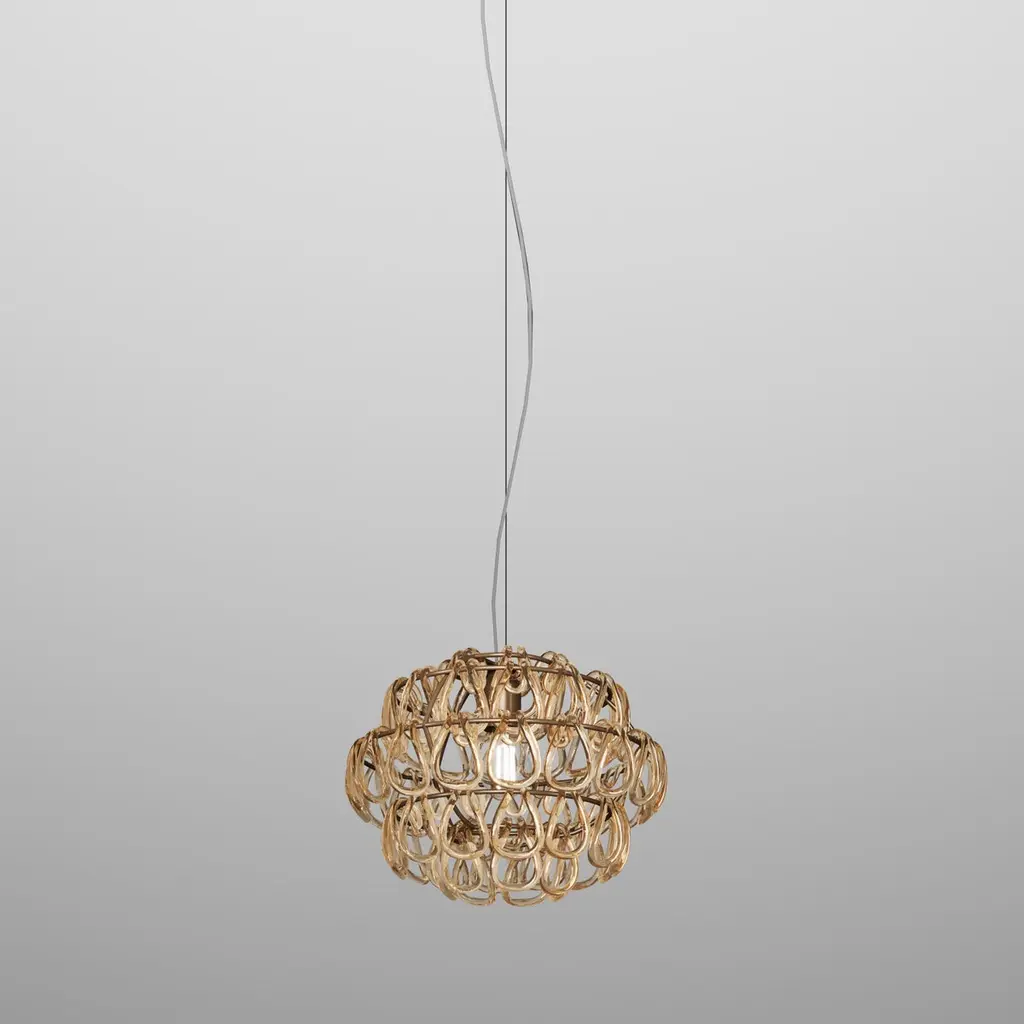 The small size version of Giogali, which allows the use of glass hooks for smaller, standard or custom-made wall installations.Specifications:Material: Glass, MetalLight source: E26 UL 1No of bulbs: 1x60W E26 UL 1 (120V/60HZ)Dimmer: DIM 1Year: 1967Glass finish: Crystal AmberFrame finish: Matt bronze 1Dimensions: Ø 35 x 25 H cmCable length: 200 cmAvailable in other glass finish options: Black, Crystal Black Nickel, White, Crystal Silver, Crystal Bronze, Crystal Smoky, Crystal Gold, Crystal Copper, Crystal TransparentAvailable in other frame finish option: Glossy chromeAvailable in other size options: Ø 25, Ø 50, Ø 65, Ø 85, Ø70, Ø 50x90, 70x40, 120x60, 80x30 cmPlease inquire about customization options.