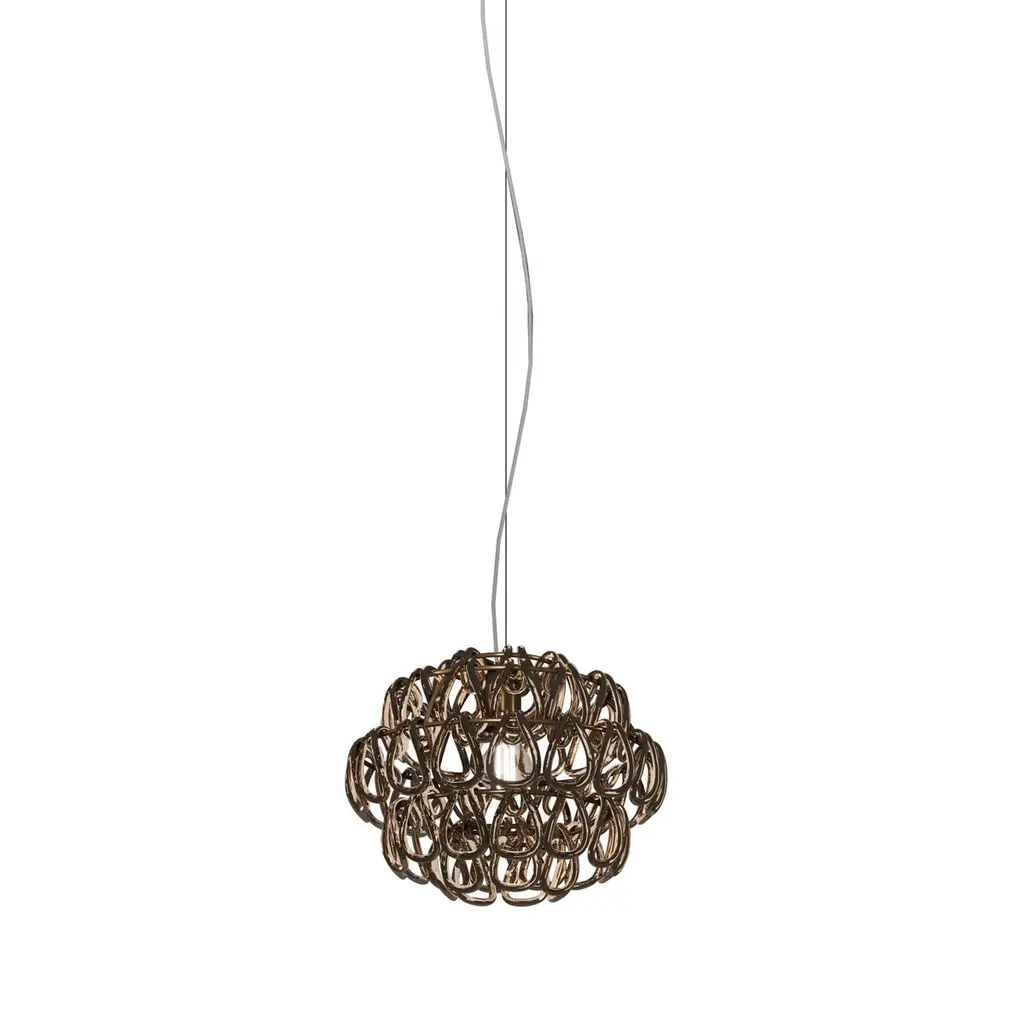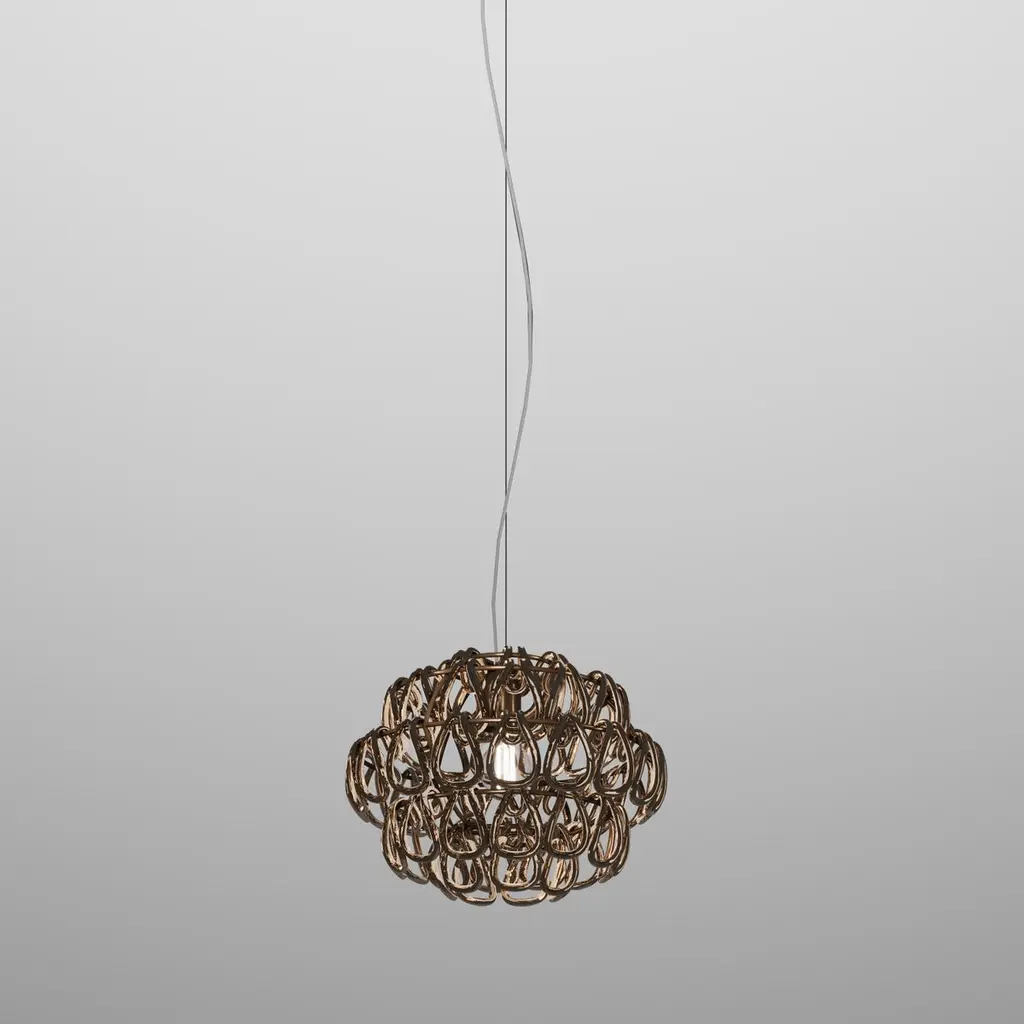 The small size version of Giogali, which allows the use of glass hooks for smaller, standard or custom-made wall installations.Specifications:Material: Glass, MetalLight source: E26 UL 1No of bulbs: 1x60W E26 UL 1 (120V/60HZ)Dimmer: DIM 1Year: 1967Glass finish: Crystal BronzeFrame finish: Matt bronze 1Dimensions: Ø 35 x 25 H cmCable length: 200 cmAvailable in other glass finish options: Black, Crystal Black Nickel, White, Crystal Silver, Crystal Amber, Crystal Smoky, Crystal Gold, Crystal Copper, Crystal TransparentAvailable in other frame finish option: Glossy chromeAvailable in other size options: Ø 25, Ø 50, Ø 65, Ø 85, Ø70, Ø 50x90, 70x40, 120x60, 80x30 cmPlease inquire about customization options.