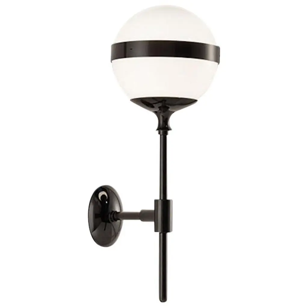 The white, blown handmade glass together with the glossy black metal, with a lead-effect treatment, interpret the polarity between black and white with the lightness of a rational and elegant design. With an impressive installation the lighting system lights up the Museum Café at Peggy Guggenheim Museum in Venice.Light source: 1 x 60W G9.