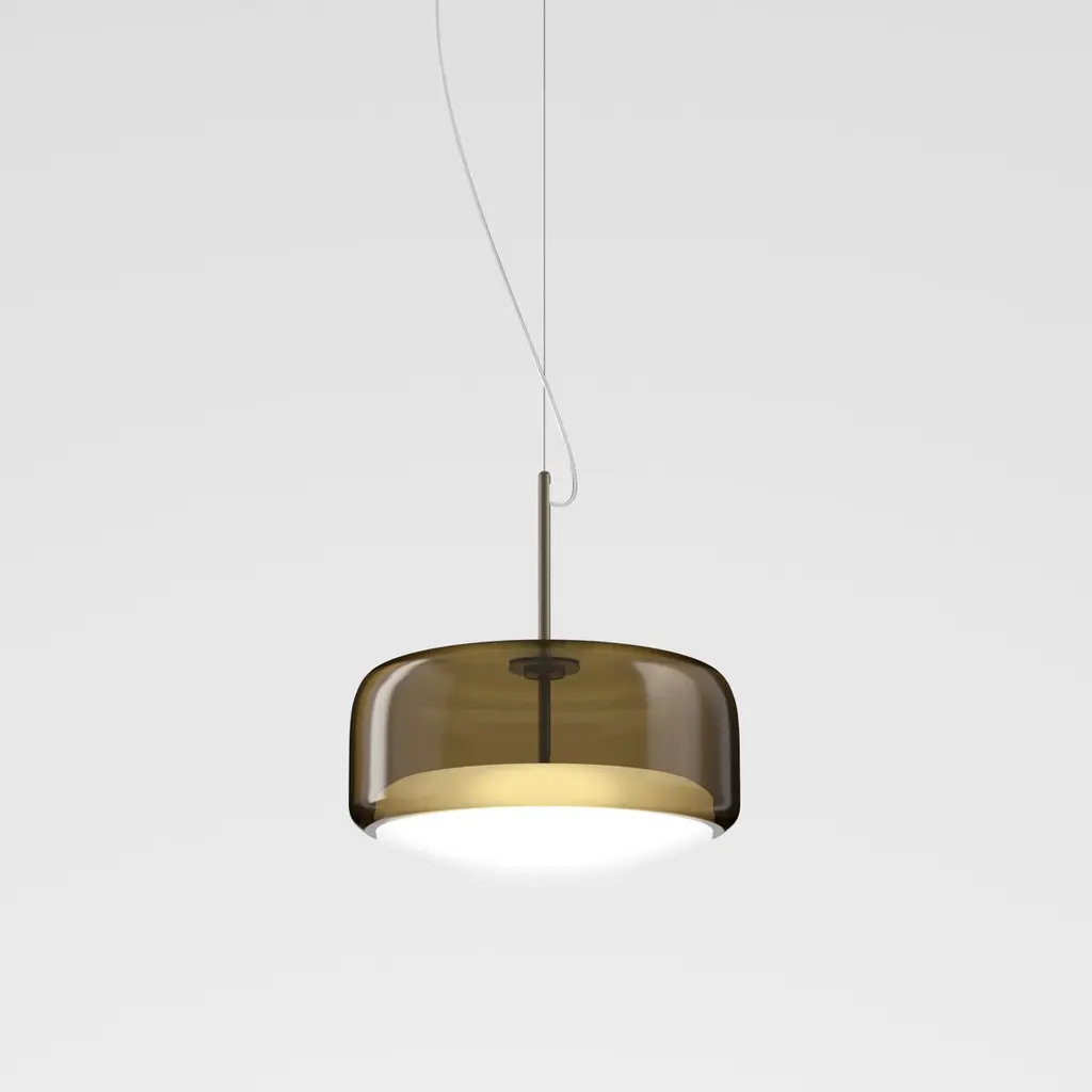 The elegant and delicate look of the blown glass finds a new dimension in Jube. Two glass units placed side by side, so perfectly assembled, that they look like a unique piece. A sinuous lamp, with tone-on-tone colours that give it a precious, vintage mood.Specifications:Material: GlassLight source: LED L2202 ULNo of bulbs: 1x13W L2202 UL (37V)Dimmer: DIM 2Lumen: 2000 lmKelvin: 2700 KYear: 2017Glass finish: Burned Earth WhiteFrame finish: Matt steelDimensions: Ø 38 x 22 H cmCable length: 200 cmAvailable in other glass finish options: White Amethyst, Crystal White, Smoky White, Old Green WhiteAvailable in other frame finish option: Matt gold 2Available in other light source options: LED L2302 UL - $ 1506, LED L3202 UL - $ 1506, LED L3302 UL - $ 1506Available in other kelvin option: 3000 KAvailable in other dimmer option: DIM 3Please inquire about customization options.
