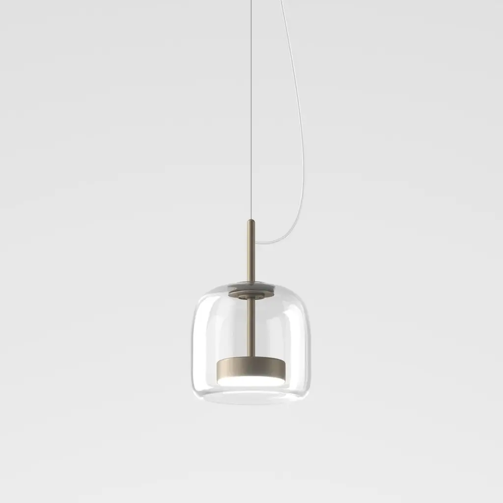 The elegant and delicate look of the blown glass finds a new dimension in Jube. Two glass units placed side by side, so perfectly assembled, that they look like a unique piece. A sinuous lamp, with tone-on-tone colours that give it a precious, vintage mood.Specifications:Material: GlassLight source: LED L2202 ULNo of bulbs: 1x13W L2202 UL (37V)Dimmer: DIM 2Lumen: 2000 lmKelvin: 2700 KYear: 2017Glass finish: Crystal TransparentFrame finish: Matt steelDimensions: Ø 26 x 24 H cmCable length: 200 cmAvailable in other glass finish options: Light Amethyst Transparent, Smoky Transparent, Burned Earth Transparent, Old Green TransparentAvailable in other frame finish option: Matt gold 2Available in other light source options: LED L2302 UL - $ 1062, LED L3202 UL - $ 1062, LED L3302 UL - $ 1062Available in other kelvin option: 3000 KAvailable in other dimmer option: DIM 3Please inquire about customization options.