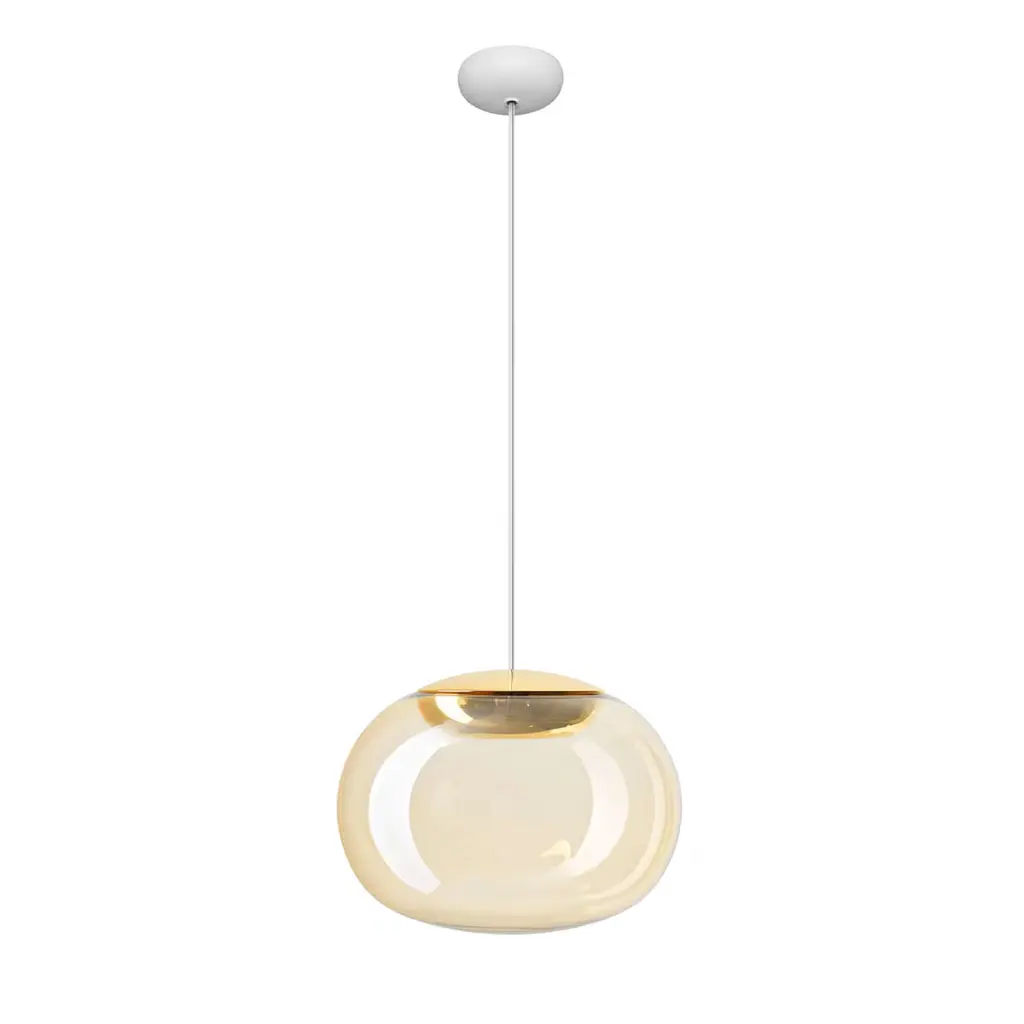 The elegant and delicate look of the blown glass finds a new dimension in Jube. Two glass units placed side by side, so perfectly assembled, that they look like a unique piece. A sinuous lamp, with tone-on-tone colours that give it a precious, vintage mood.Specifications:Material: GlassLight source: LED L2202 ULNo of bulbs: 1x13W L2202 UL (37V)Dimmer: DIM 2Lumen: 2000 lmKelvin: 2700 KYear: 2017Glass finish: Light Amethyst TransparentFrame finish: Matt gold 2Dimensions: Ø 26 x 24 H cmCable length: 200 cmAvailable in other glass finish options: Crystal Transparent, Smoky Transparent, Burned Earth Transparent, Old Green TransparentAvailable in other frame finish option: Matt steelAvailable in other light source options: LED L2302 UL - $ 1062, LED L3202 UL - $ 1062, LED L3302 UL - $ 1062Available in other kelvin option: 3000 KAvailable in other dimmer option: DIM 3Please inquire about customization options.