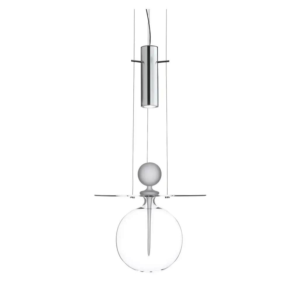 Spherical blown glass elements available in three sizes and four rigadin colours, with and without lighting source. The special design allows the vertical installation of several glass elements and infinite customized combinations.Specifications:Material: GlassLight source: G9 ULNo of bulbs: 1×60W G9 UL (120V/60HZ)Dimmer: DIM 1Year: 2015Glass finish: White stripedFrame finish: Satin NickelDimensions: Ø 18 x 50 H cmCable length: 150 cmAvailable in other glass finish options: Amber Striped, Crystal striped, Smoky stripedPlease inquire about customization options.