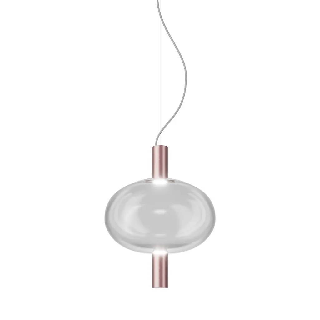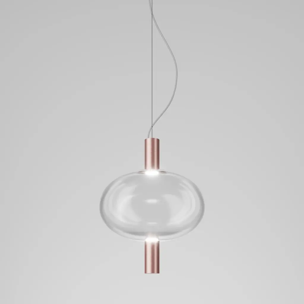 In the Riflesso collection the simplicity and lightness of glass become the main features with three different sinuous shapes. The silhouettes of the diffuser are enhanced by the LED light source.Specifications:Material: GlassLight source: LED L2310 ULNo of bulbs: 1x12.5W LED L2310 UL (35 V)Lumens: 1500 lmKelvin: 2700 KDimmer: DIM 3Year: 2019Glass finish: Crystal TransaprentFrame finish: Matt Copper 2Dimensions: Ø 36 x 45 H cmCable length: 200 cmAvailable in other glass finish option: Amber TransaprentAvailable in other frame finish option: Matt Gold 3Available in other light source options: LED L2210 UL - $ 1152, LED L3210 UL - $ 1152, LED L3310 UL- $ 1152Available in other kelvin option: 3000 K for LED L3210 UL, LED L3310 ULAvailable in other dimmer option: DIM 2 for LED L2210 UL, LED L3210 ULAvailable in other size options: Ø 28cm, Ø 32cmPlease inquire about customization options.