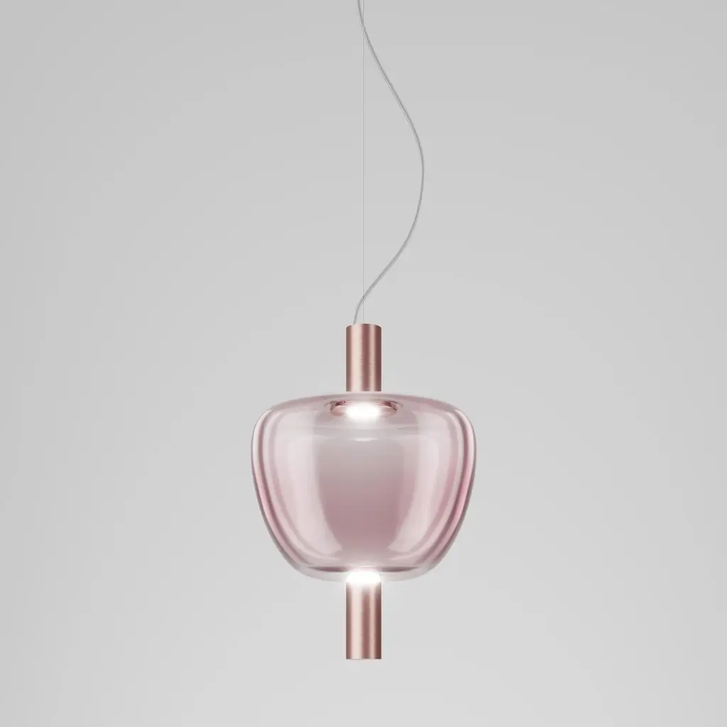 In the Riflesso collection the simplicity and lightness of glass become the main features with three different sinuous shapes. The silhouettes of the diffuser are enhanced by the LED light source.Specifications:Material: GlassLight source: LED L2310 ULNo of bulbs: 1x12.5W LED L2310 UL (35 V)Lumens: 1500 lmKelvin: 2700 KDimmer: DIM 3Year: 2019Glass finish: Light Amethyst TransaprentFrame finish: Matt Copper 2Dimensions: Ø 32 x 47 H cmCable length: 200 cmAvailable in other glass finish option: Crystal TransaprentAvailable in other frame finish option: Matt Gold 3Available in other light source options: LED L2210 UL - $ 1152, LED L3210 UL - $ 1152, LED L3310 UL- $ 1152Available in other kelvin option: 3000 K for LED L3210 UL, LED L3310 ULAvailable in other dimmer option: DIM 2 for LED L2210 UL, LED L3210 ULAvailable in other size options: Ø 36cm, Ø 28cmPlease inquire about customization options.