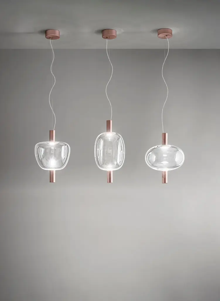 Vistosi Riflesso Pendant Light In Light Amethyst Transaprent Glass Copper Frame