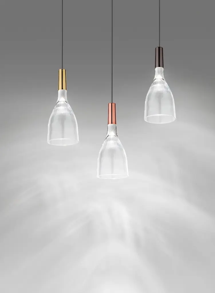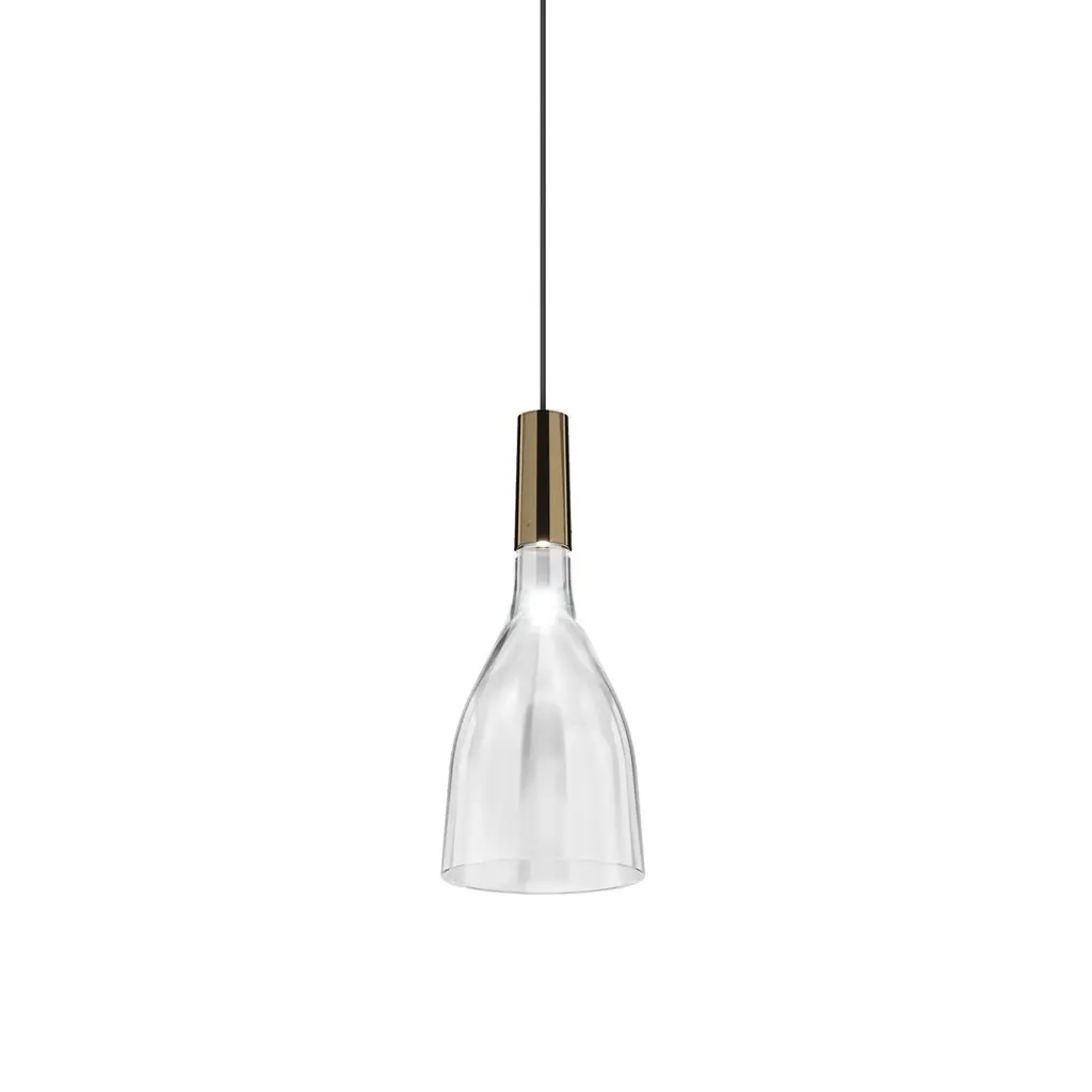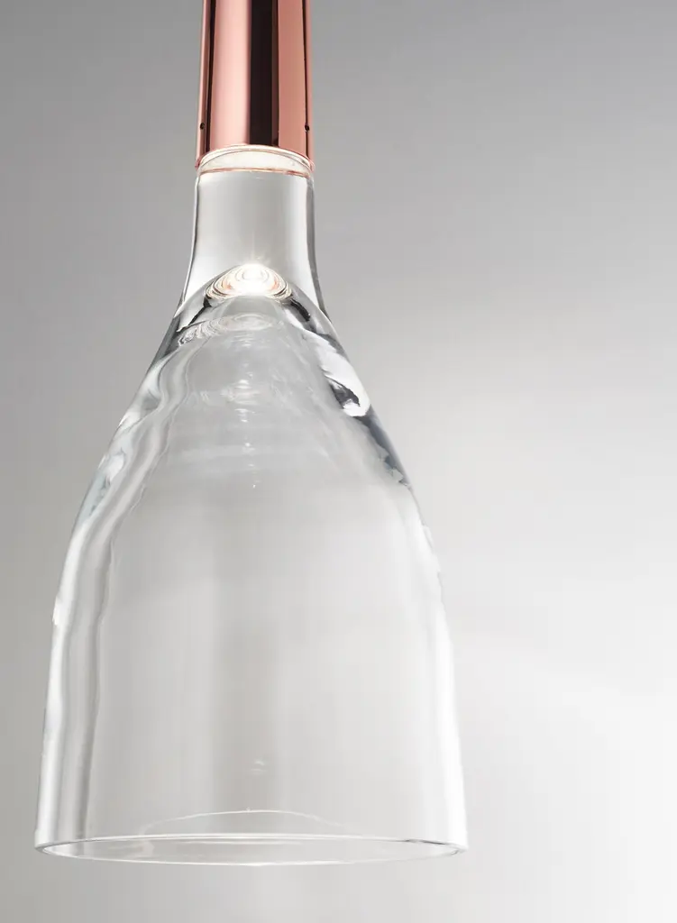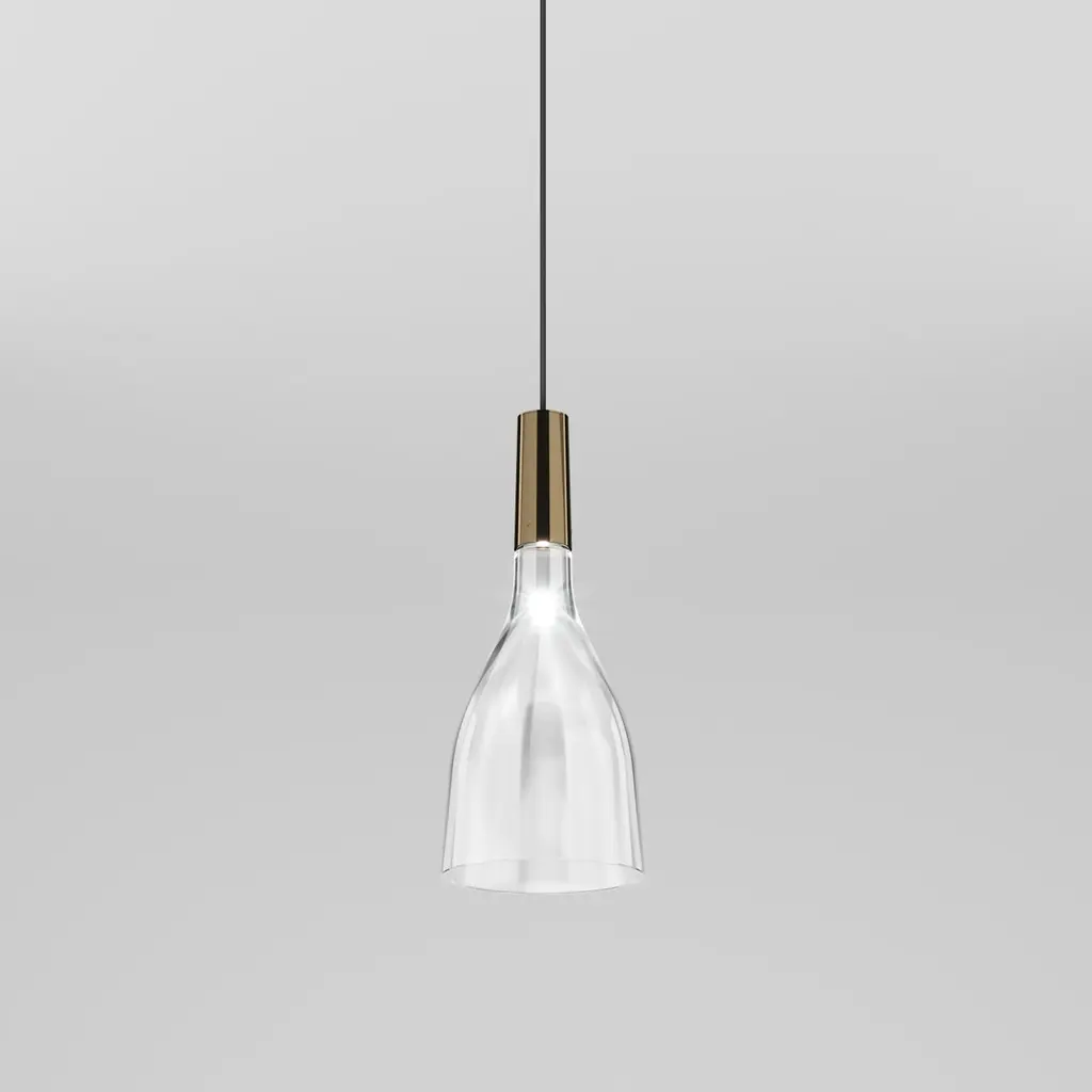 Scintilla is a classic, timeless form. The LED source lights up its sober and sinuous silhouette, creating patterns of light and emotion thanks to the full bottom of its glass cup. In its name lies the idea and shape of the light that come to life in the transparencies of the crystal. These glass tones combine harmoniously with copper, bronze and gold glossy finishes.Specifications:Material: Glass, MetalLight source: LED L2311 ULNo of bulbs: 1x6W LED L2311 UL (100-120V 50/60 Hz)Lumens: 1500 lmKelvin: 2700 KDimmer: DIM 3Year: 2019Glass finish: Crystal TransaprentFrame finish: Glossy Bronze 2Dimensions: Ø 18 x 40 H cmCable length: 200 cmAvailable in other frame finish options: Gossy Brass 2, Glossy CopperAvailable in other light source options: LED L2211 UL - $ 904, LED L3211 UL - $ 904, LED L3311 UL- $ 904Available in other lumens option: 1600 lm for LED L3211 UL, LED L3311 ULAvailable in other kelvin option: 3000 K for LED L3211 UL, LED L3311 ULAvailable in other dimmer option: DIM 2 for LED L2211 UL, LED L3211 ULPlease inquire about customization options.