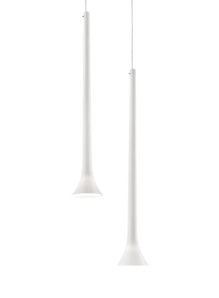 Sissi is an elegant mouth-blown glass in the shape of a narrow sinuous cone, suitable for installations requiring concentrated light.Light source: 1x50W GU10.