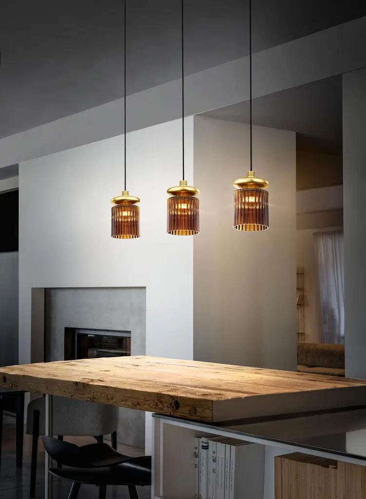 The “technicity” of the metal element combined with the blown glass diffuser gives Tread an “industrial” style. An object reminiscent of vintage electrical equipment for its particular shape, in which the finned heat sink, combined with blown glass, becomes a distinctive element. Tread creates an avant-garde and stylish atmosphere by combining crystal, smoky, burned earth and transparent old green glass with copper, gold and bronze matt finishes.Specifications:Material: GlassLight source: LED L2213 ULNo of bulbs: 1x8W LED L2213 UL (100-120 v 50/60HZ)Lumens: 1500 lmKelvin: 2700 KDimmer: DIM 2Year: 2019Glass finish: Burned Earth TransparentFrame finish: Matt Gold 3Dimensions: Ø 15 x 22 H cmCable length: 200 cmAvailable in other glass finish options: Crystal Transparent, Smoky Transparent, Old Green TransparentAvailable in other frame finish options: Matt Bronze 3, Matt Copper 1Available in other light source options: LED L2313 UL - $ 840, LED L3213 UL - $ 840, LED L3313 UL - $ 840Available in other lumens option: 1600 lm for LED L3213 UL, LED L3313 ULAvailable in other kelvin option: 3000 K for LED L3213 UL, LED L3313 ULAvailable in other dimmer option: DIM 3 for LED L2313 UL, LED L3313 ULPlease inquire about customization options.
