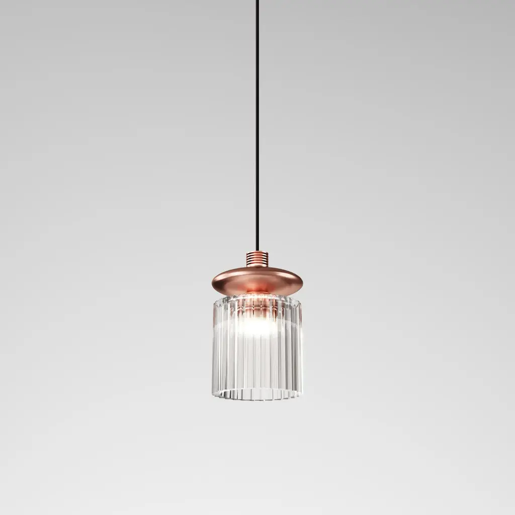 The “technicity” of the metal element combined with the blown glass diffuser gives Tread an “industrial” style. An object reminiscent of vintage electrical equipment for its particular shape, in which the finned heat sink, combined with blown glass, becomes a distinctive element. Tread creates an avant-garde and stylish atmosphere by combining crystal, smoky, burned earth and transparent old green glass with copper, gold and bronze matt finishes.Specifications:Material: GlassLight source: LED L2213 ULNo of bulbs: 1x8W LED L2213 UL (100-120 v 50/60HZ)Lumens: 1500 lmKelvin: 2700 KDimmer: DIM 2Year: 2019Glass finish: Crystal TransparentFrame finish: Matt Copper 1Dimensions: Ø 15 x 22 H cmCable length: 200 cmAvailable in other glass finish options: Smoky Transparent, Burned Earth Transparent, Old Green TransparentAvailable in other frame finish options: Matt Bronze 3, Matt Gold 3Available in other light source options: LED L2313 UL - $ 840, LED L3213 UL - $ 840, LED L3313 UL - $ 840Available in other lumens option: 1600 lm for LED L3213 UL, LED L3313 ULAvailable in other kelvin option: 3000 K for LED L3213 UL, LED L3313 ULAvailable in other dimmer option: DIM 3 for LED L2313 UL, LED L3313 ULPlease inquire about customization options.