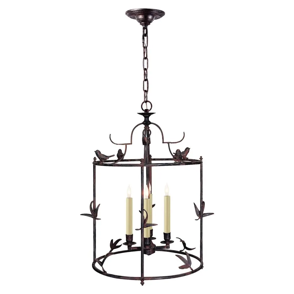 Visual Comfort Diego French Rust Iron Metal Perching Bird Pendant - Petite